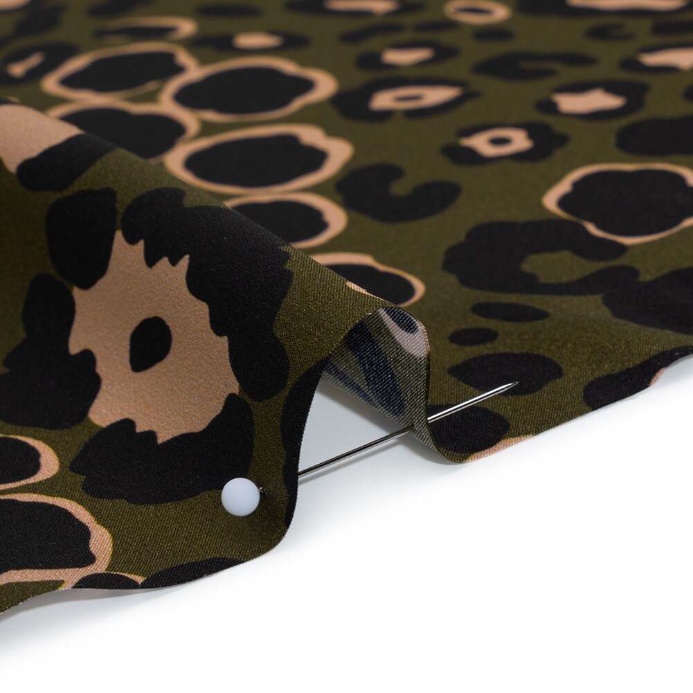 1 Yard Italian Silk Charmeuse Fabric Dark Olive Green Beige Black Animal Spots 53 inch