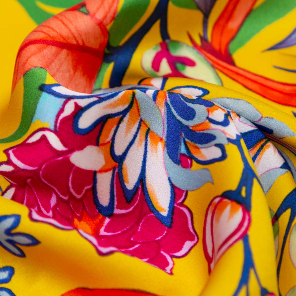 1 Yard Italian Silk Charmeuse Fabric Mimosa Stone Blue Floral Digitally Printed 55 inch