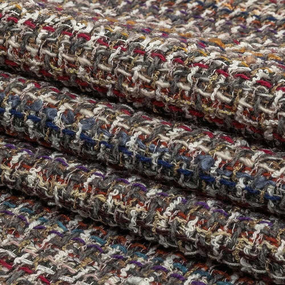 1 Yard Italian White Beige and Multicolor Blended Wool Tweed Fabric