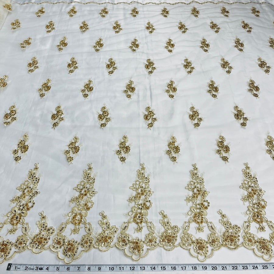 1 Yard Ivory Beaded and Corded Bridal Lace Fabric Embroidered on Polyester Net Mesh 54 Inch Width