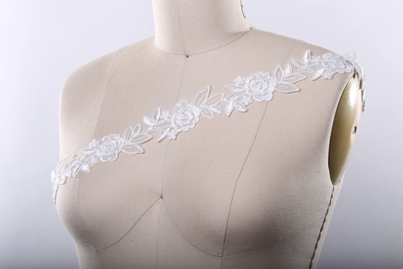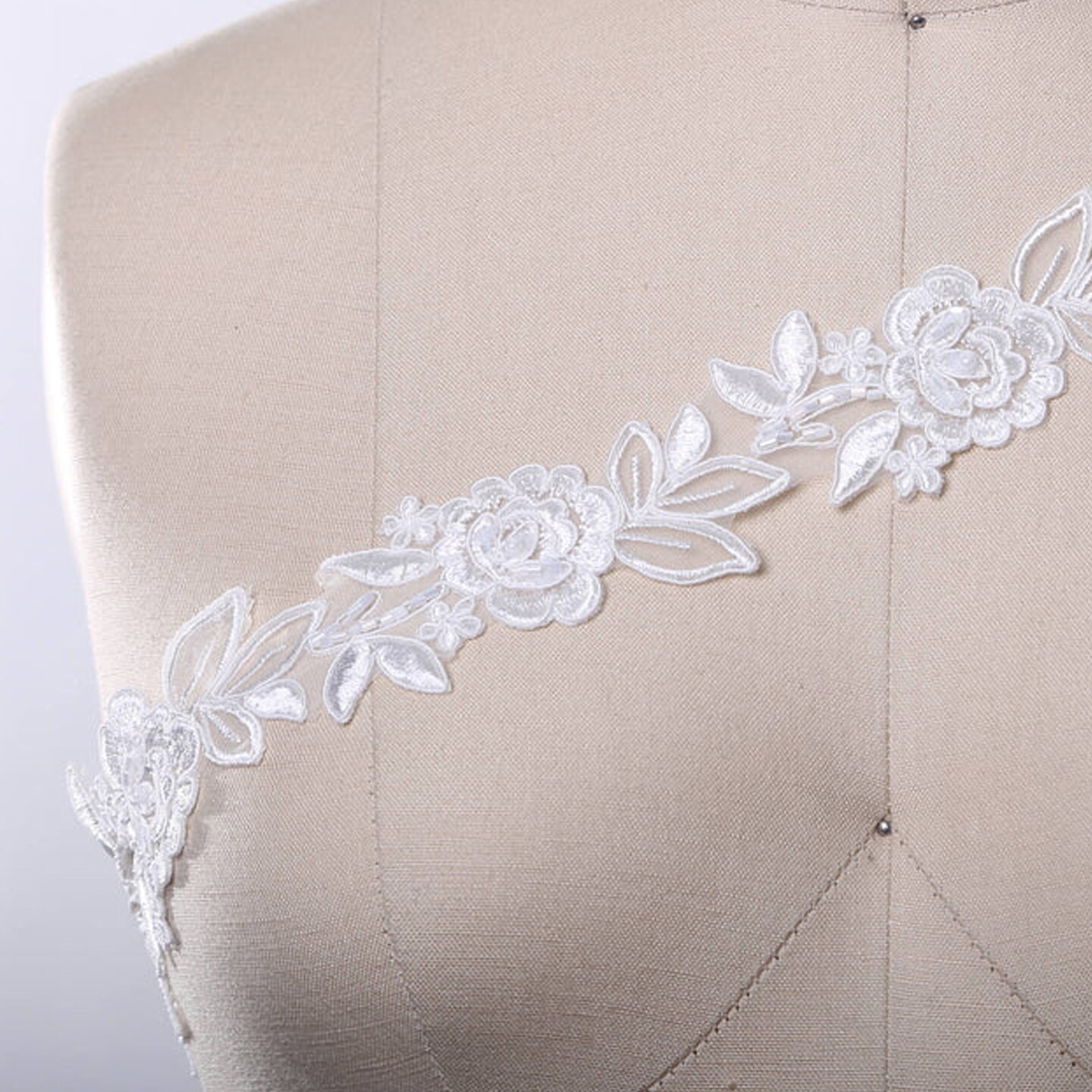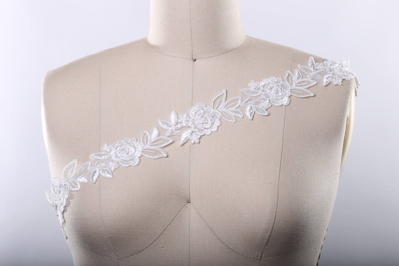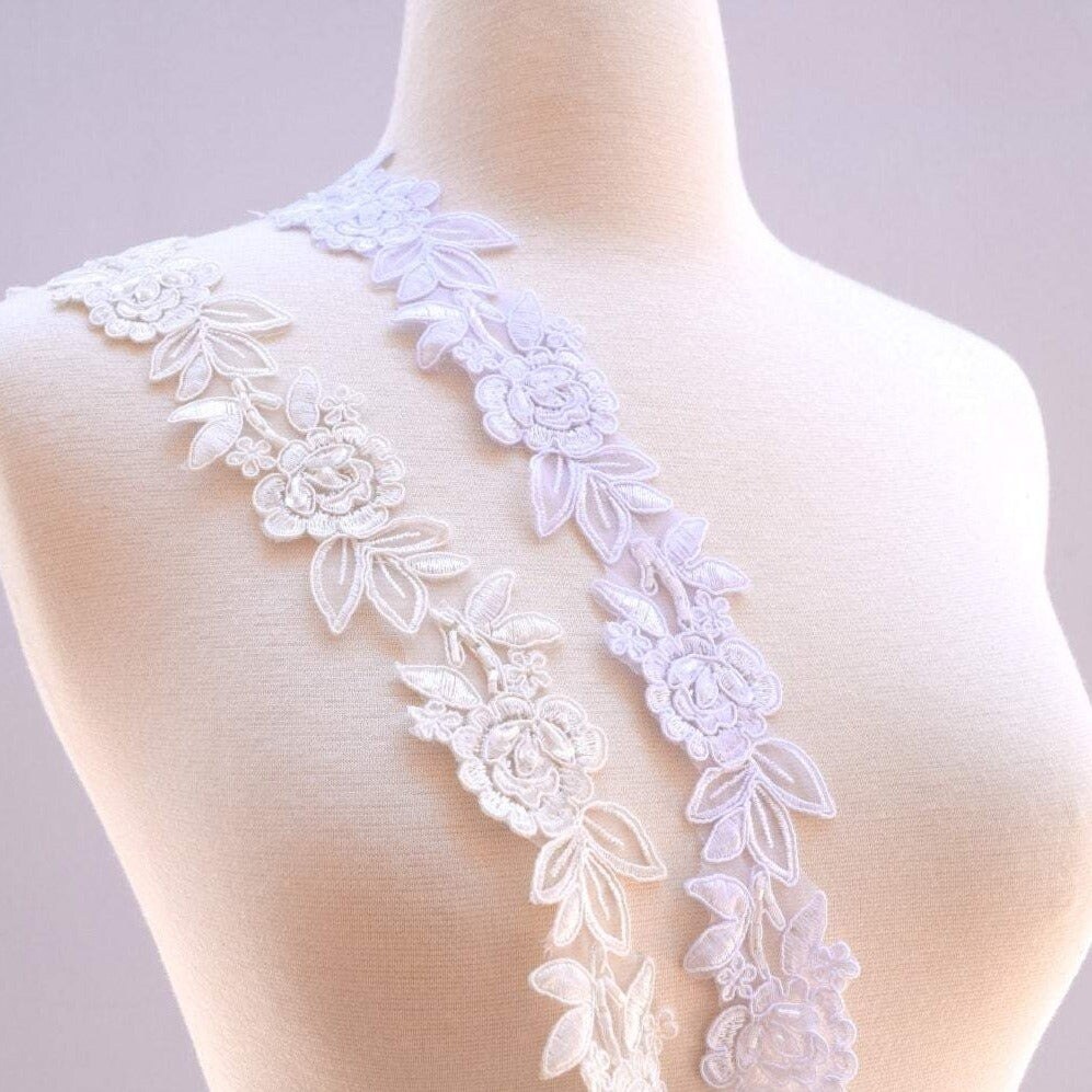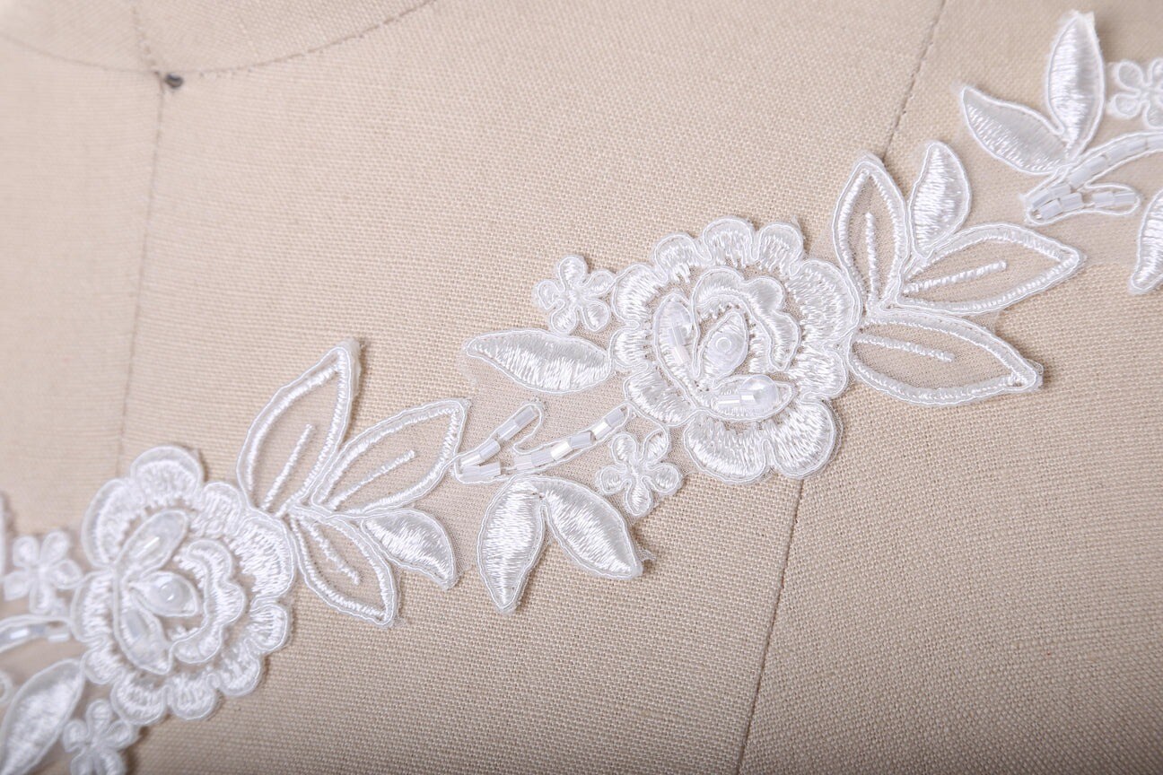 1 Yard Ivory Beaded Floral Bridal Lace Trim for Wedding Gowns Veils and Evening Dresses 1.5 Inch wide