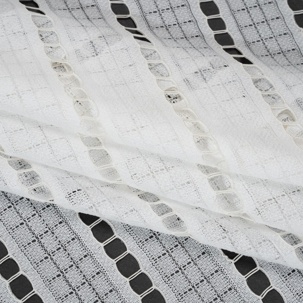 1 Yard Ivory Corded Lace Fabric Squares and Stripes Sheer Elegant Design 52 inch Width