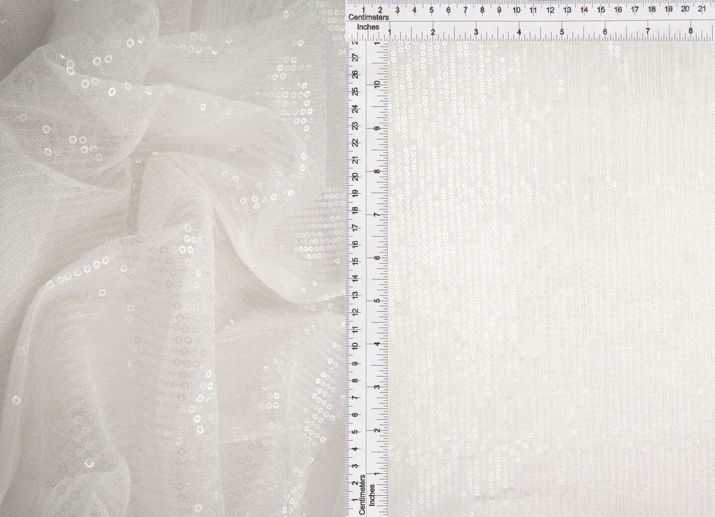 1 Yard Ivory Embroidered Sequin Mesh Stretch Fabric, Polyester Spandex Blend