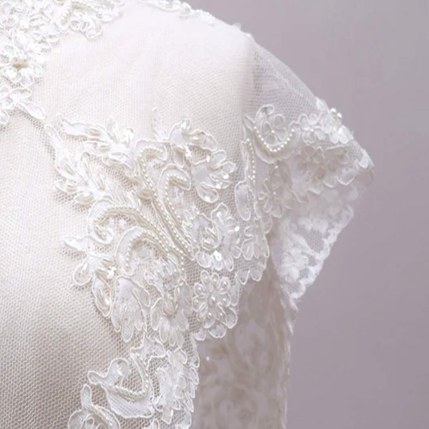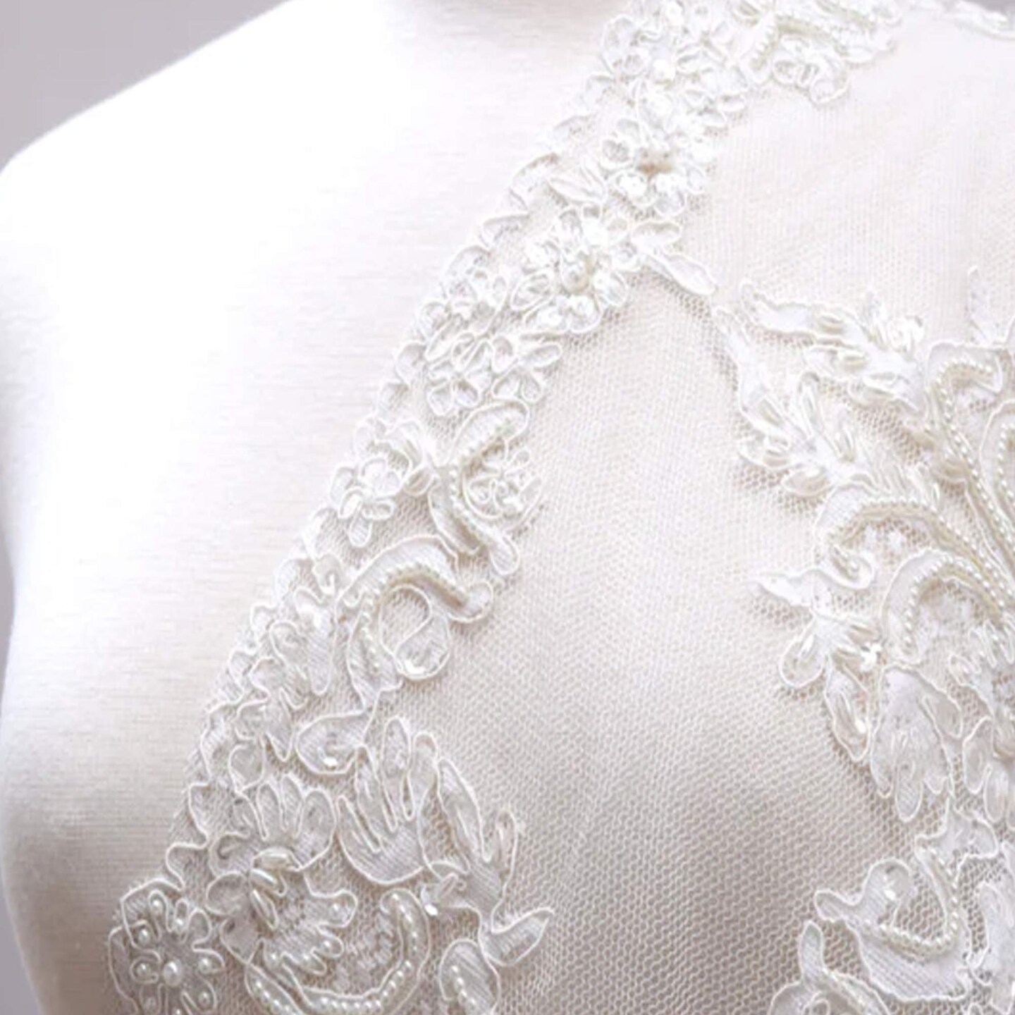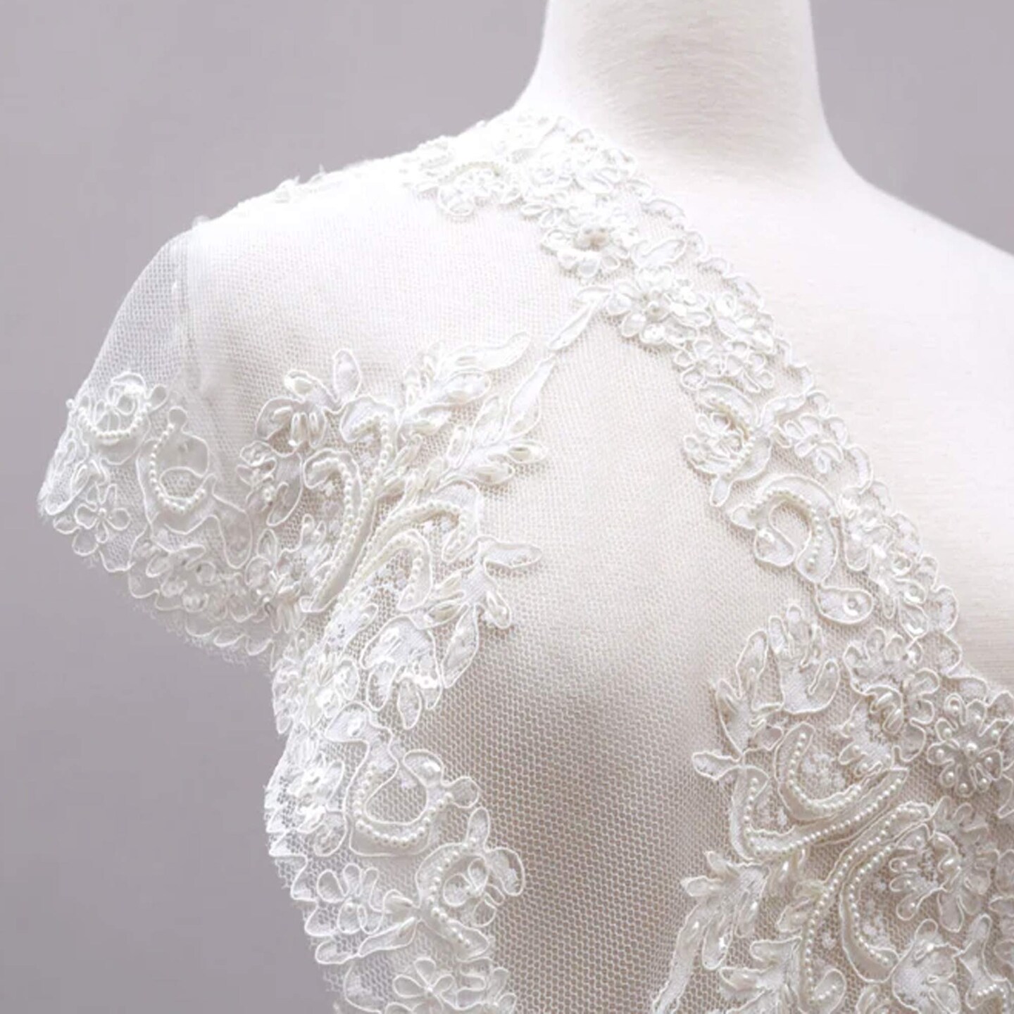 1 Yard Ivory Lace Trim 9 Inch Sequin Beaded Bridal Veil Mesh Embellishment