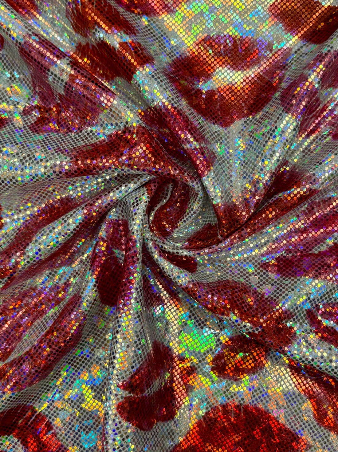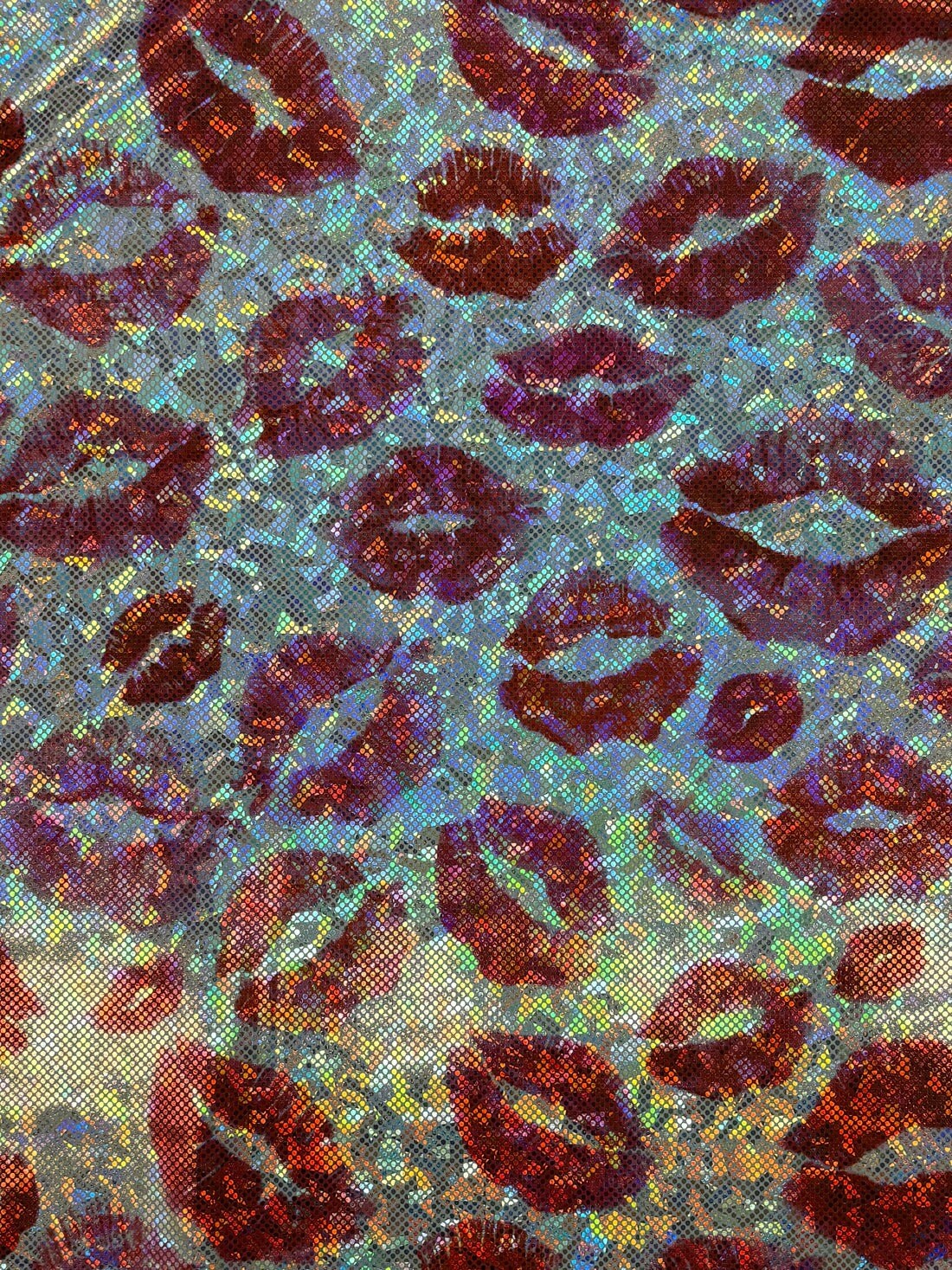 1 Yard Kiss Print Shattered Glass Metallic Spandex 4‑way Stretch Fabric Costumes Activewear 36" × 60"