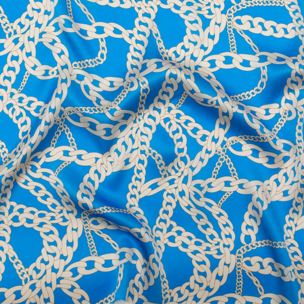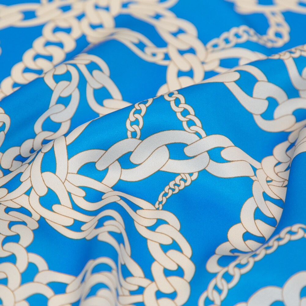 1 Yard Light Blue Oatmeal Chains Digitally Printed Silk Charmeuse, 55 Inches Width
