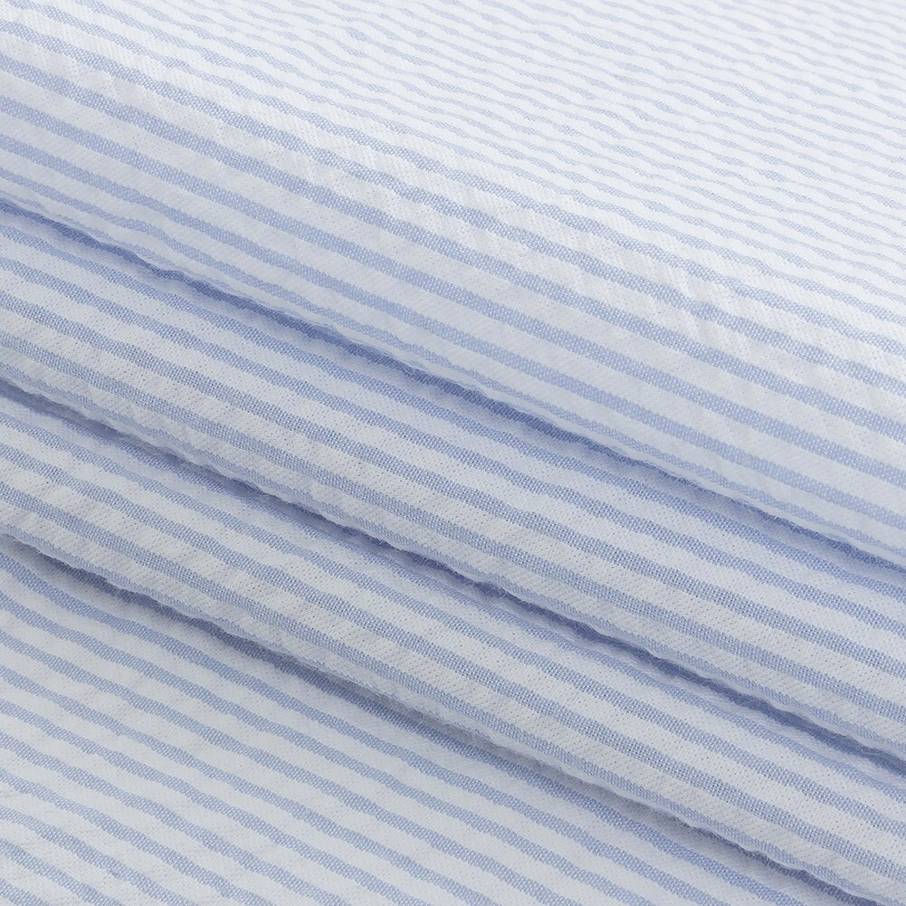 1 Yard Light Blue Striped 100 Percent Organic Cotton Seersucker Fabric