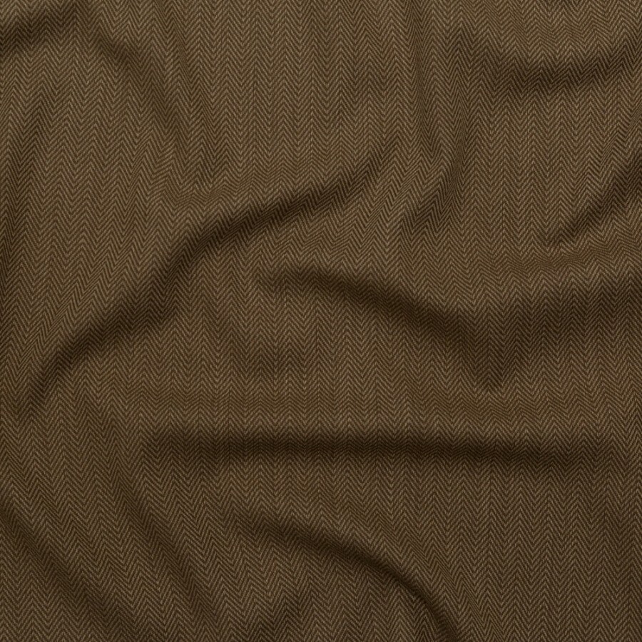 1 Yard Light Medium Italian Wool Blend Suiting Fabric Beige and Camel Herringbone Tailored 60 inch Width