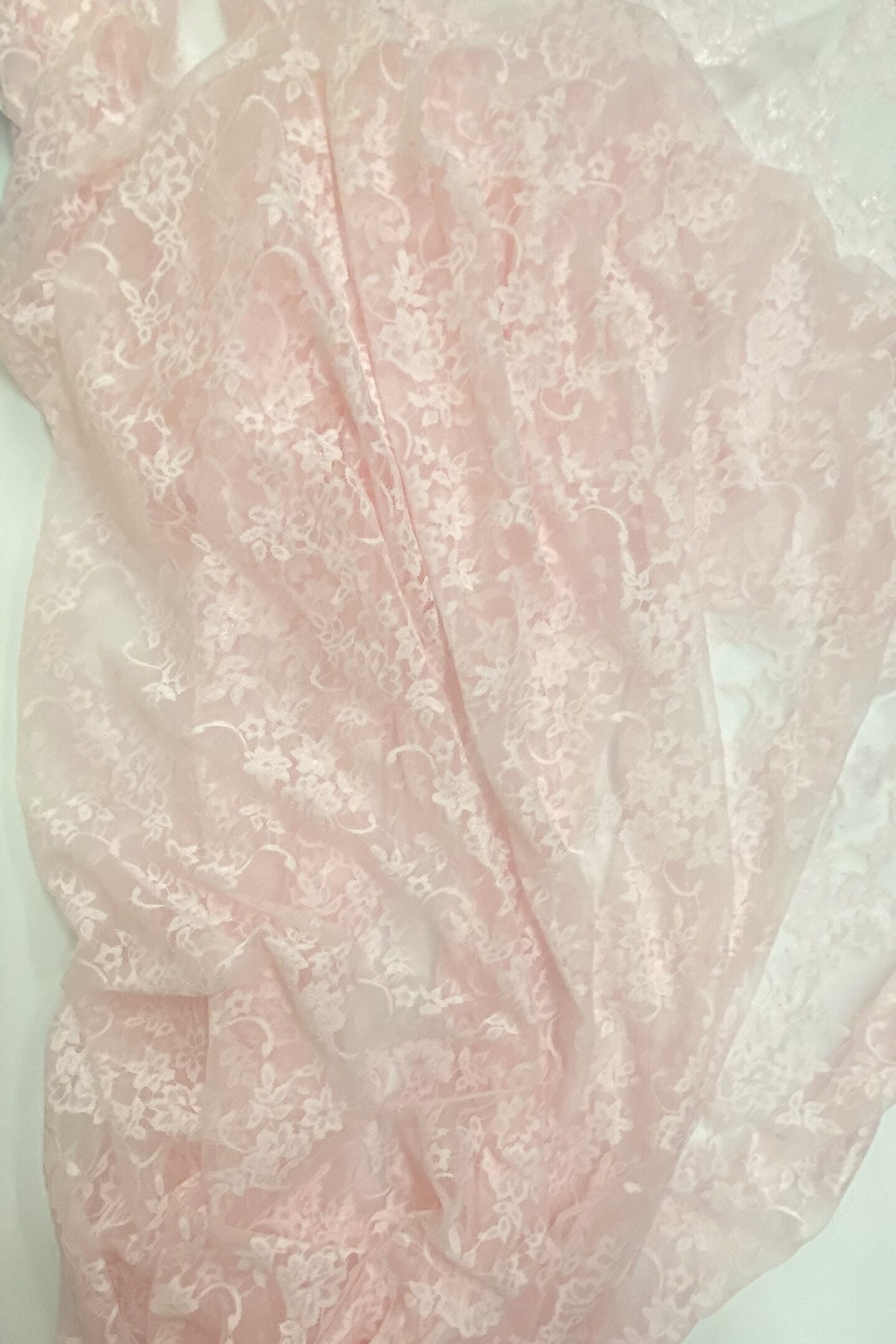 1 Yard Light Pink Sheer Floral Stretch Lace Fabric 4-Way Nylon Spandex Shimmery 58/60″ Wide