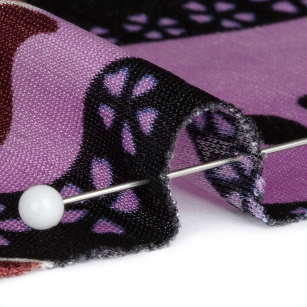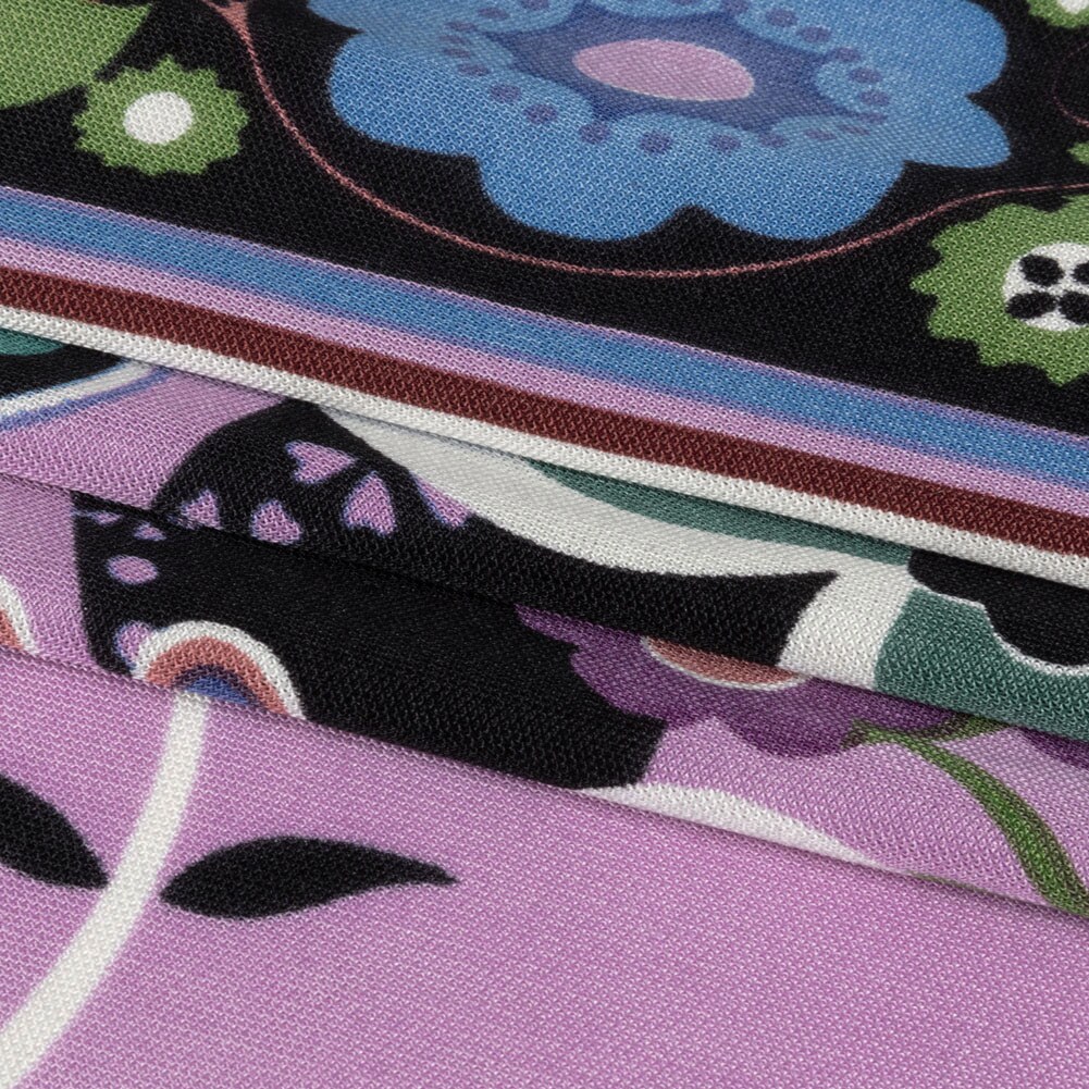 1 Yard Lilac, Teal and Rust Floral Border Stripe Silk Jersey 44" Wide, Border Print Fabric for Dresses, Tops, Skirts