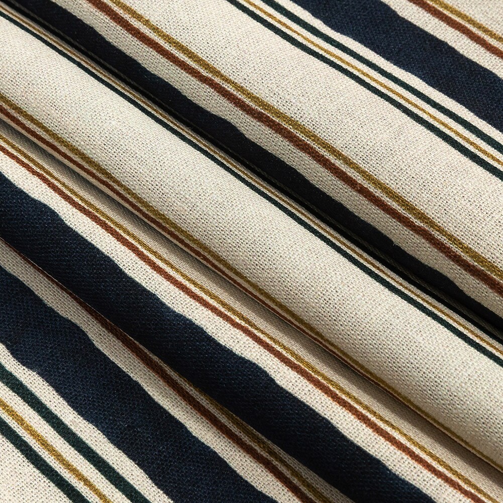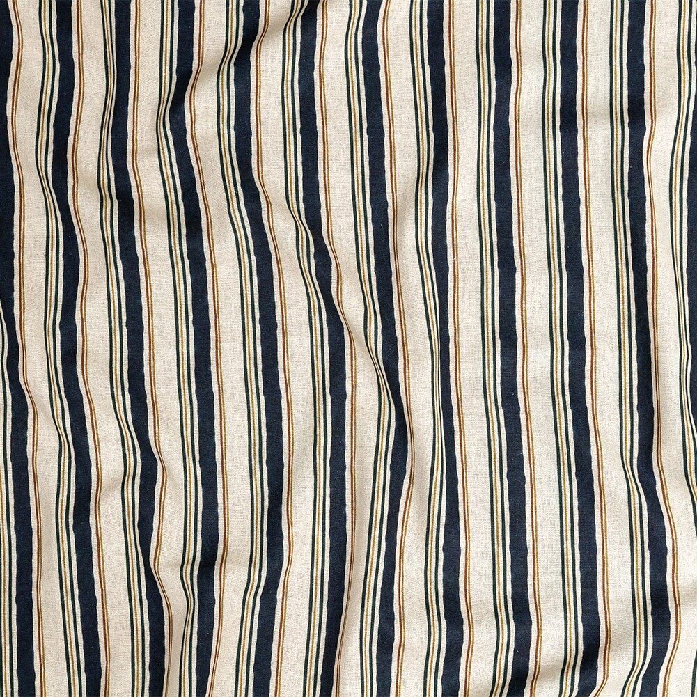 1 Yard Linen and Rayon Woven Natural and Navy Stripes Linear Transcendence Print Fabric