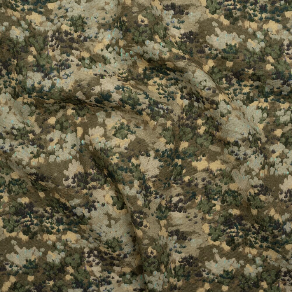1 Yard Linen and Rayon Woven Olive Green and Beige Abstract Dots Forest Lookout Print