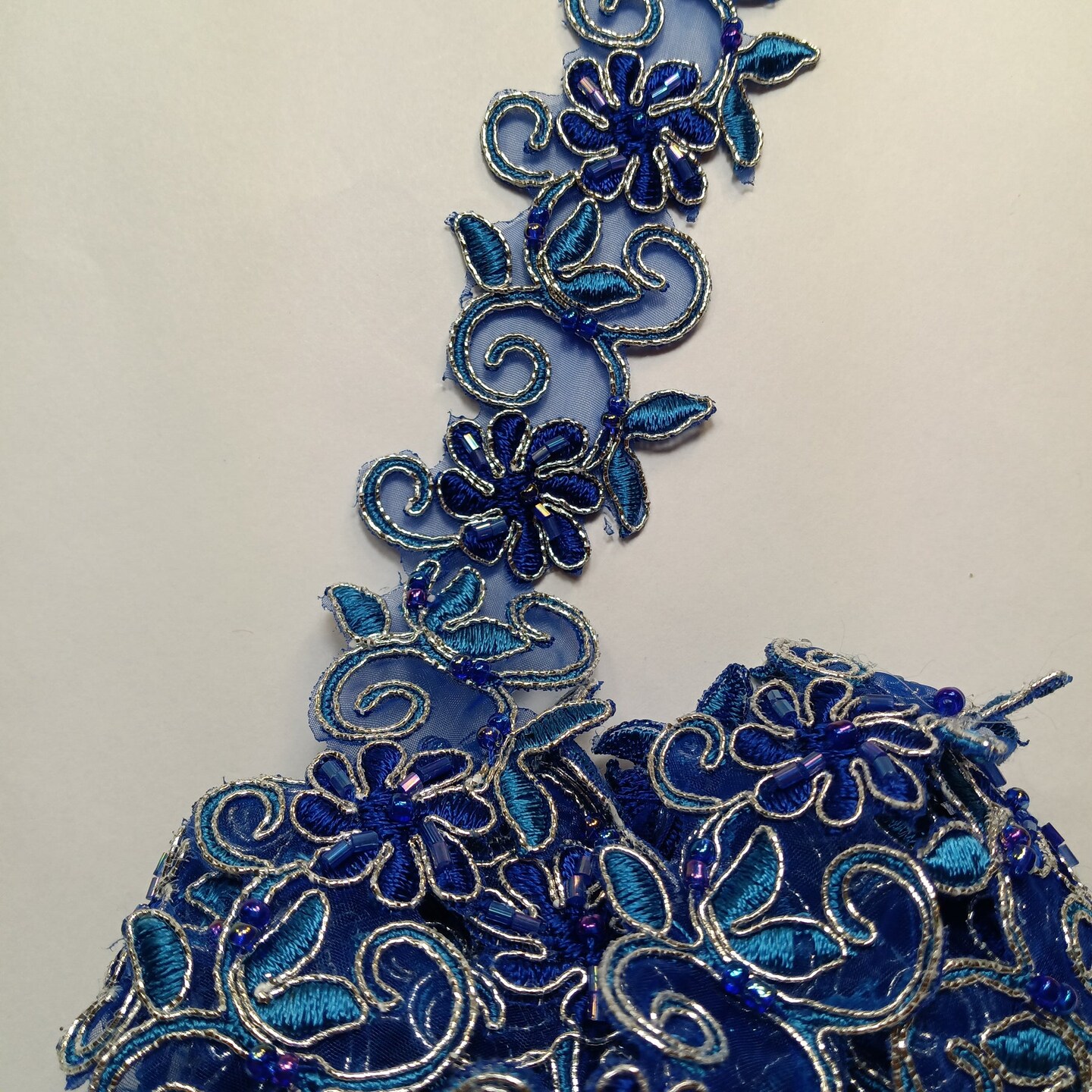 1 Yard Luxurious Beaded Corded Lace Trimming Embroidered Polyester Organza for Dresses 1.5 Inch Width