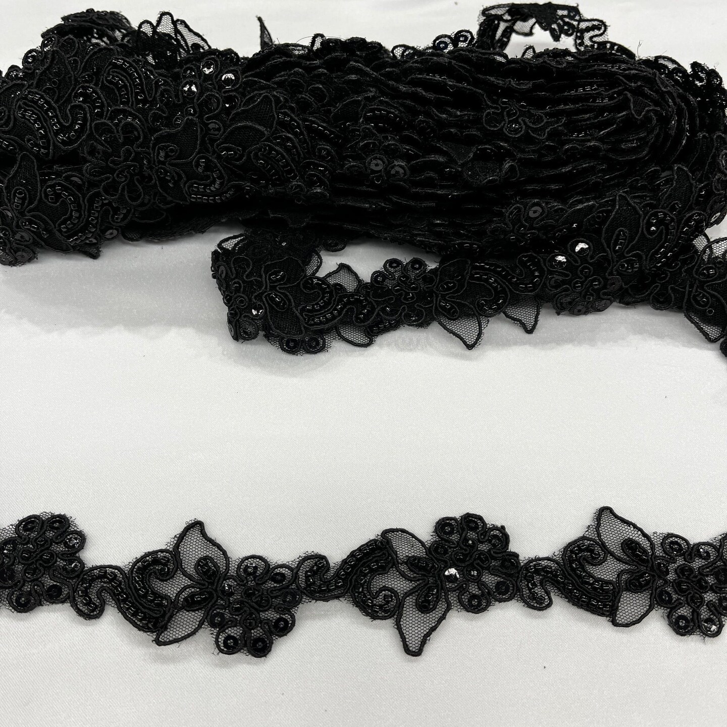 1 Yard Luxury Beaded and Corded Lace Trimming Embroidered on Fine Polyester Organza for Dresses 2 Inch Width