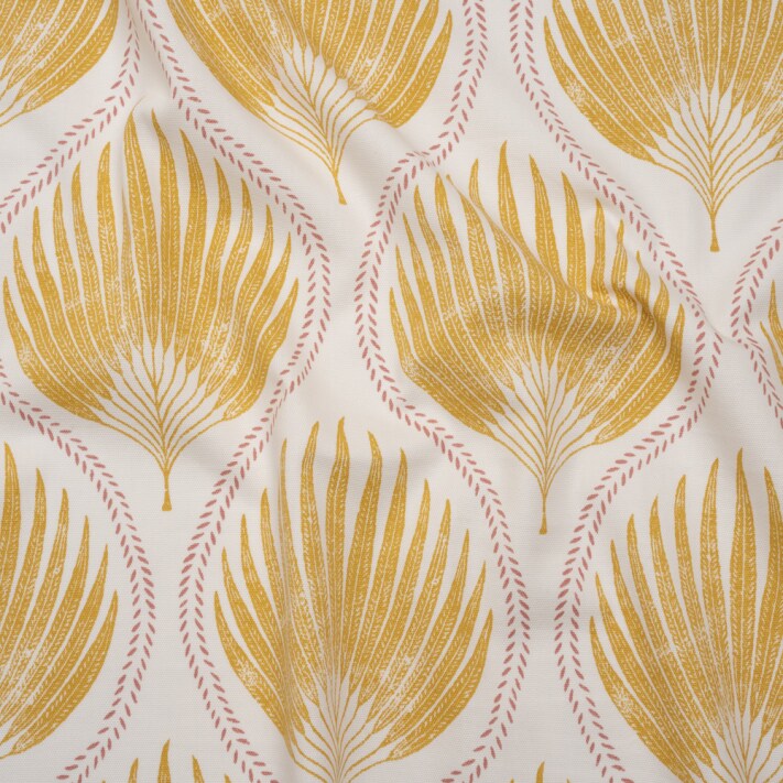 1 Yard Marigold Palm Leaf Ogee Cotton Canvas Print Fabric