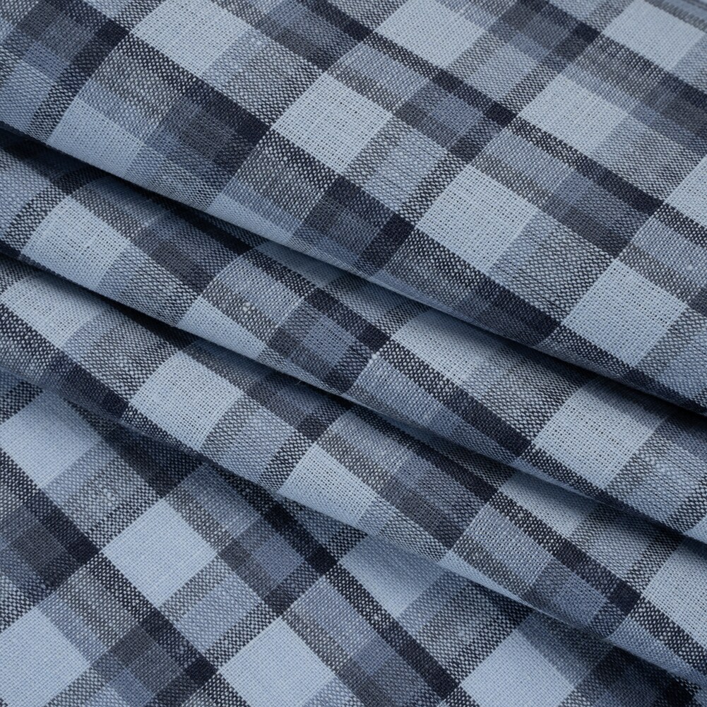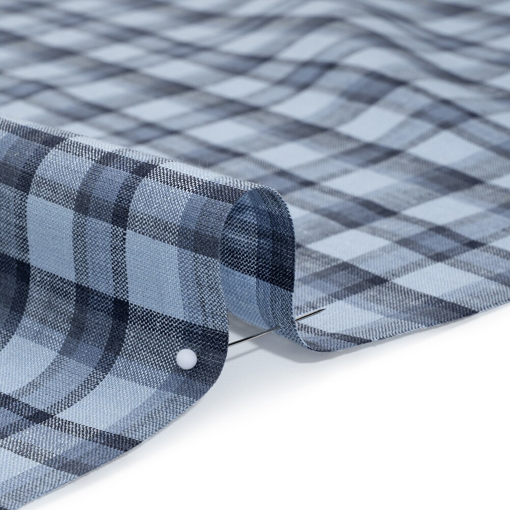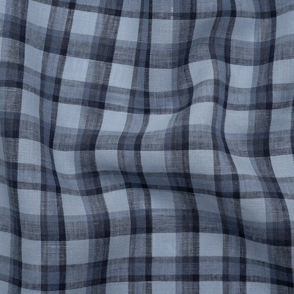 1 Yard Medium Weight Linen Woven - Navy and Sky Blue Plaid