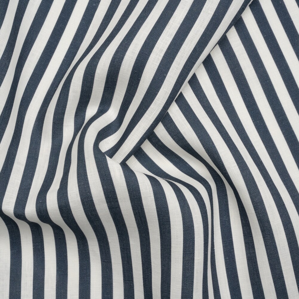 1 Yard Medium Weight Linen Woven Steel Blue Stripes 58-inch Width Fabric