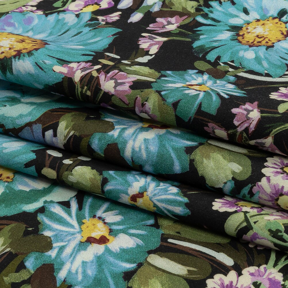 1 Yard Midnight Marvel Cotton Poplin Fabric with Floral Design for Dresses and Shirting