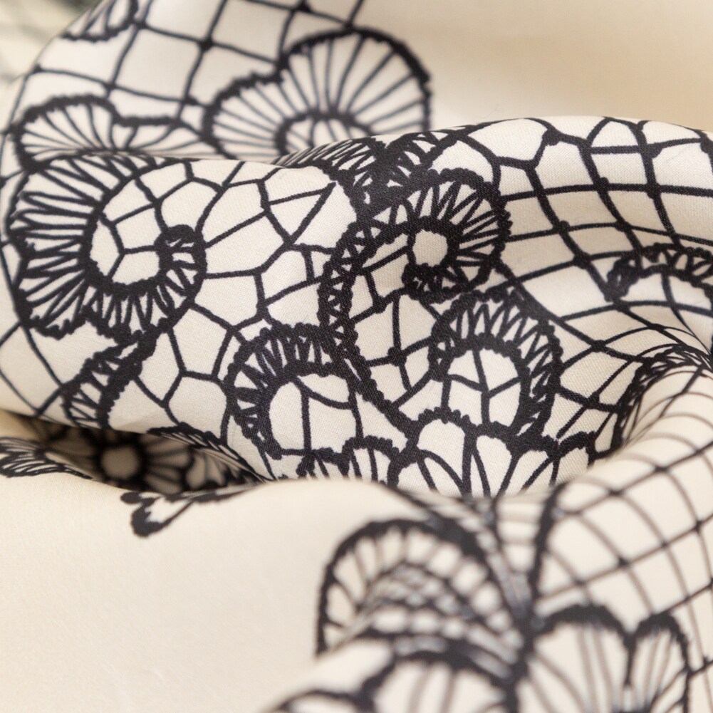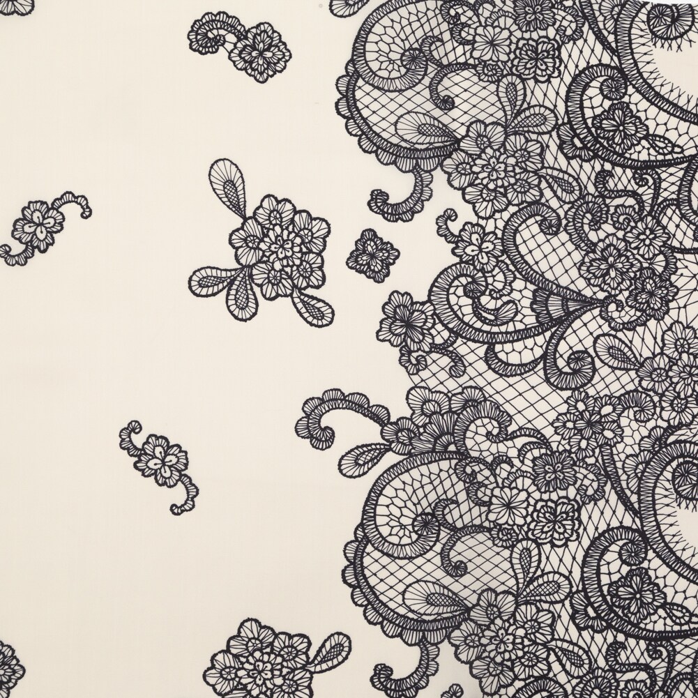 1 Yard Mood Exclusive Italian Black on Putty Floral Lace Border Digitally Printed Silk Organza 55’’ Width