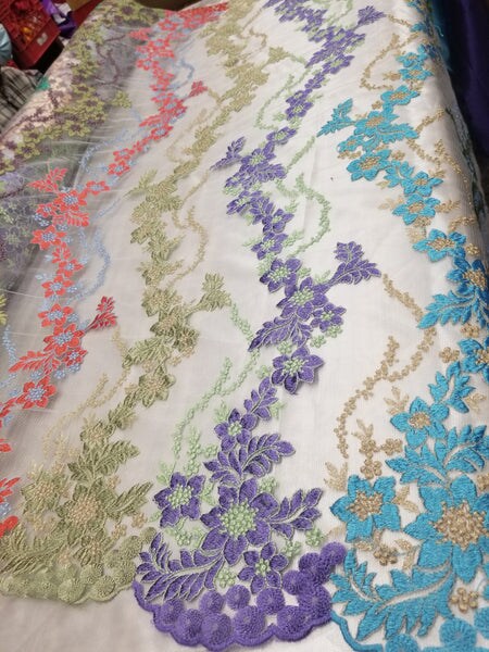 1 Yard Multicolor Floral Bridal Mesh Lace Fabric for Wedding Dresses 50/54 Inch Width