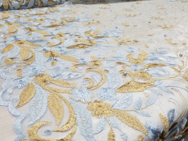 1 Yard Multicolor Floral Bridal Mesh Lace Fabric for Wedding Dresses 50/54 Inch Width