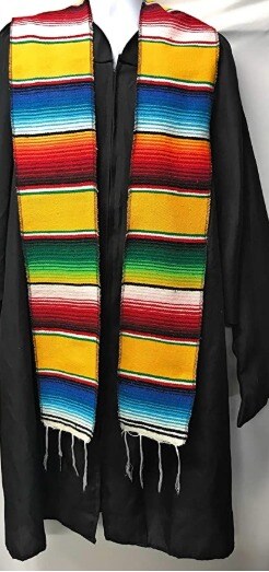 1 Yard Multicolor Mexican Serape Graduation Stole Sash Woven Handmade Fabric with Fringe 5 Inch Width