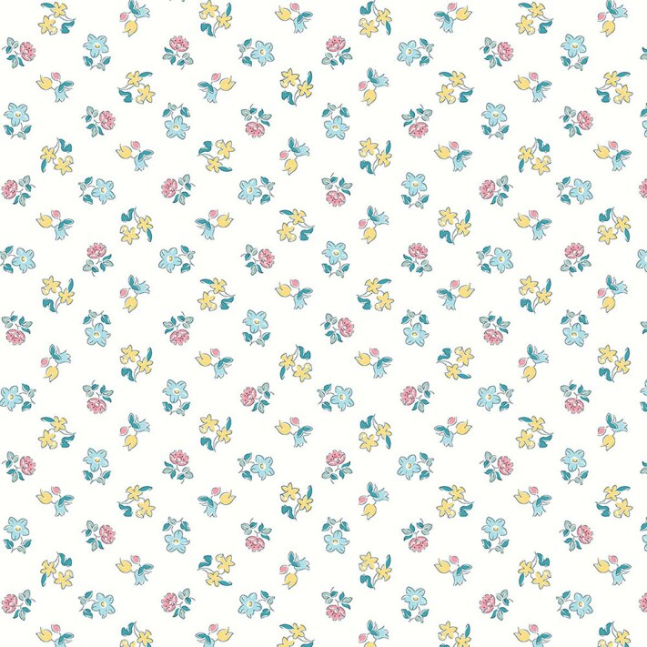 1 Yard Muted Blue and Yellow Spring Buds Quilting Cotton Fabric