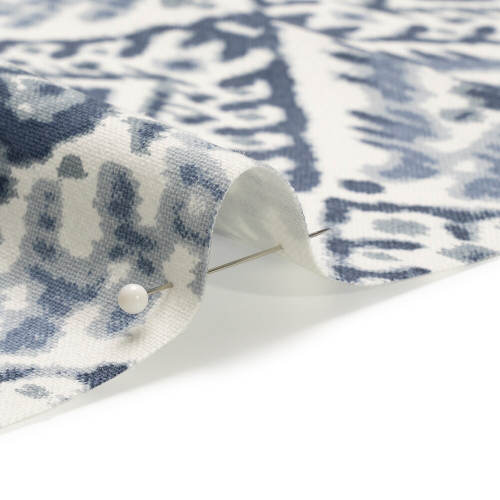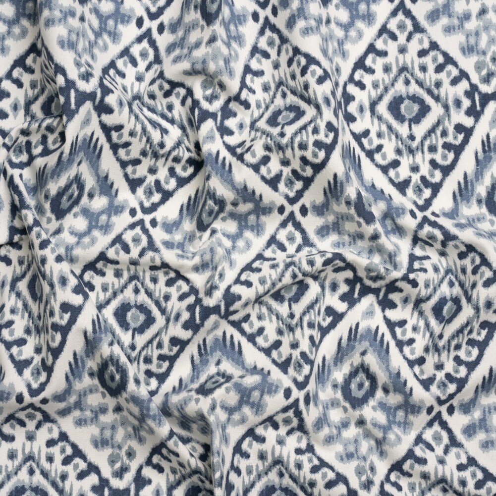 1 Yard Muted Blue, Navy and White Decorative Ikat Diamonds Cotton Canvas