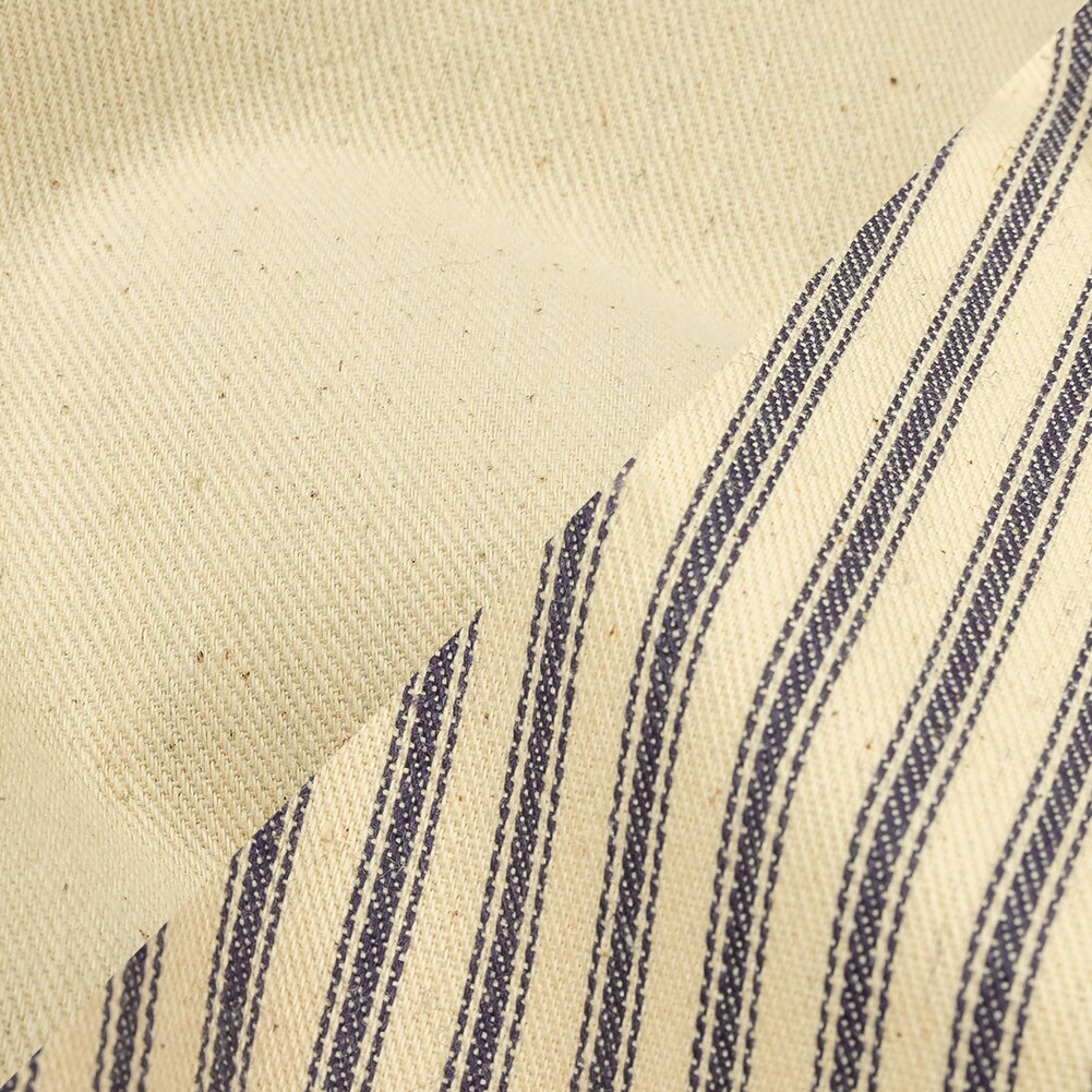 1 Yard Natural and Blue Bonded Ticking Stripe Twill and Speckled Cotton Twill