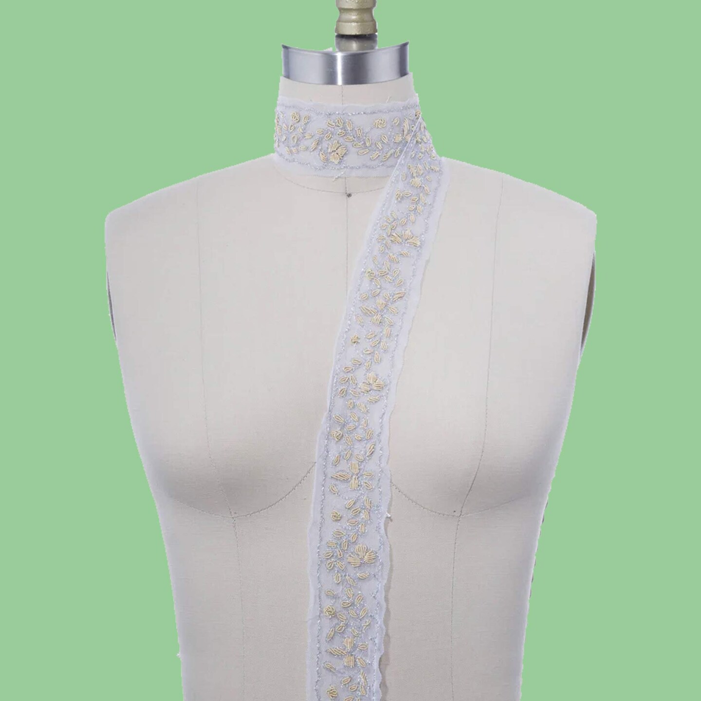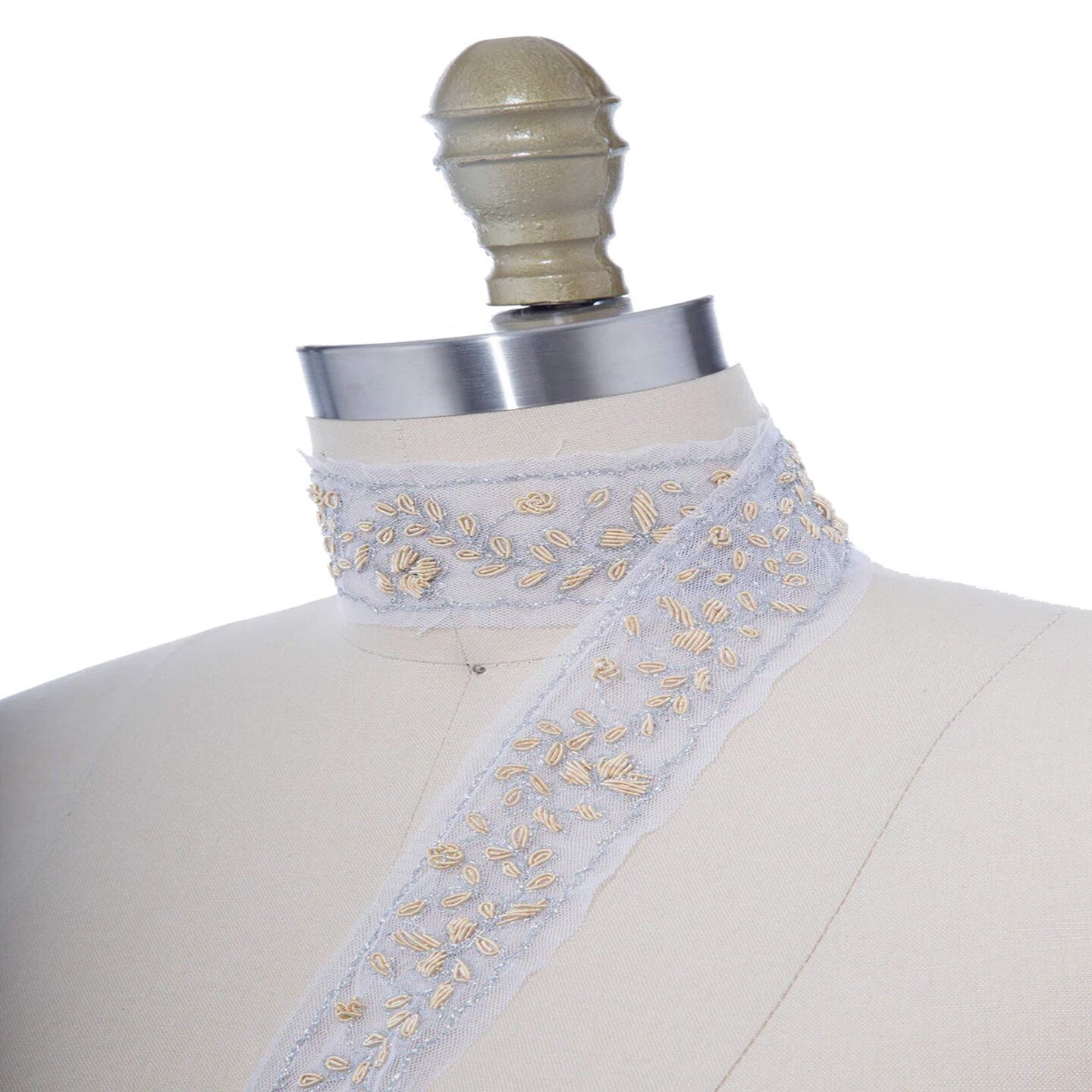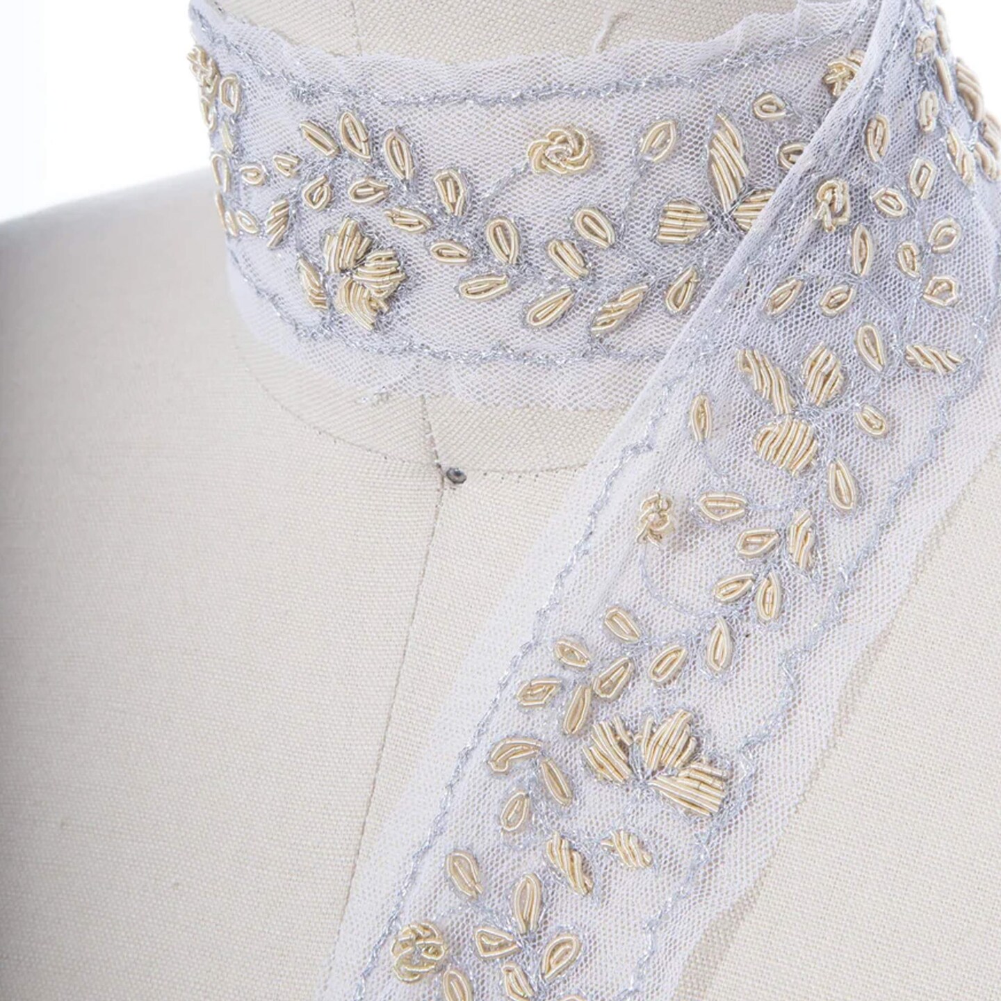 1 Yard Natural Twine 3D Chiffon Lace Trim with Silver Border