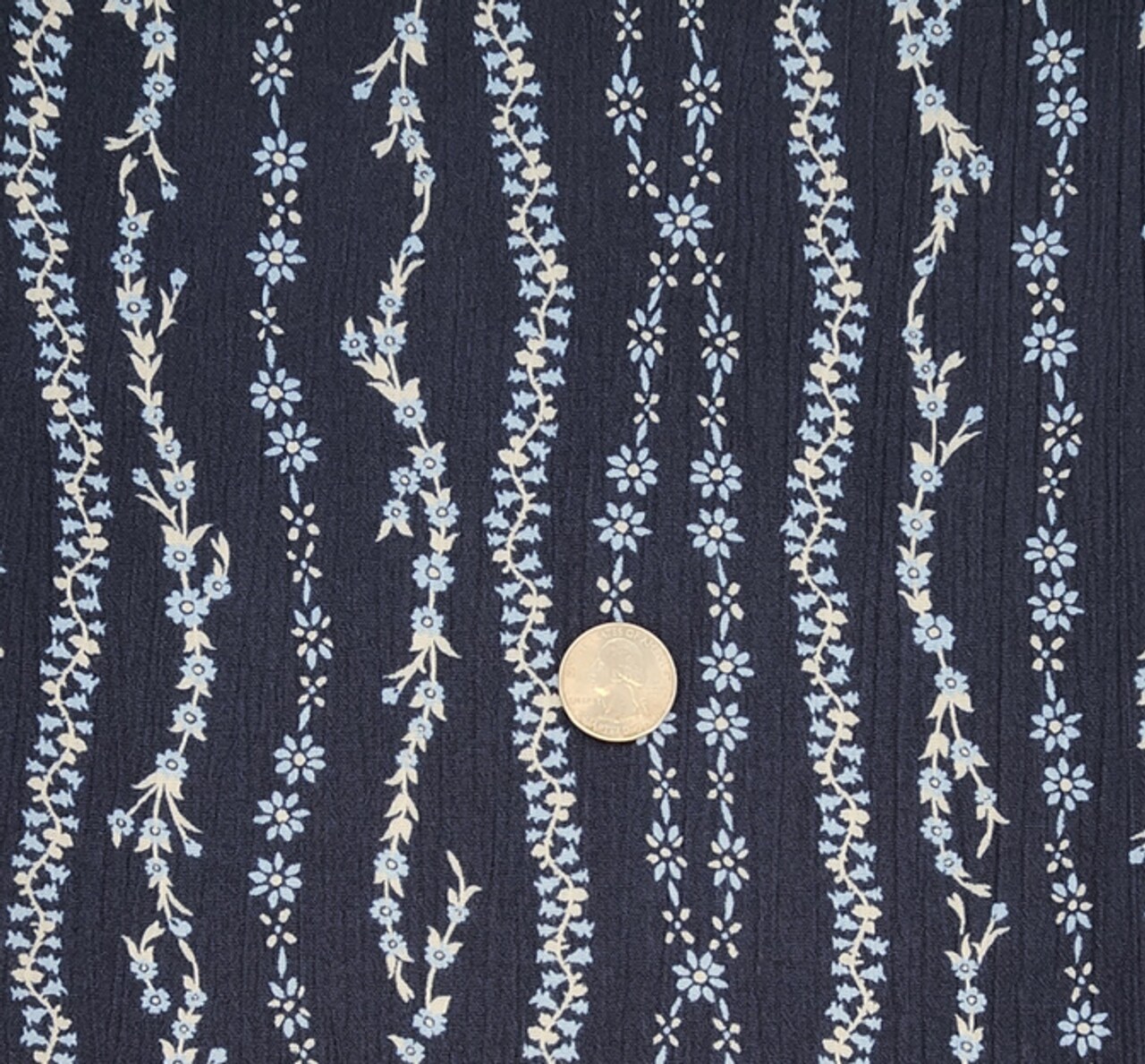 1 Yard Navy Blue Rayon Crinkle Apparel Fabric, 100% Rayon, 50/52” Wide