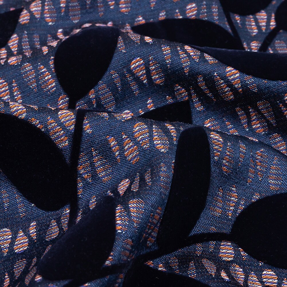 1 Yard Navy Lilac Orange Blue Leaf Vine Striped Cotton Polyester Jacquard Fabric