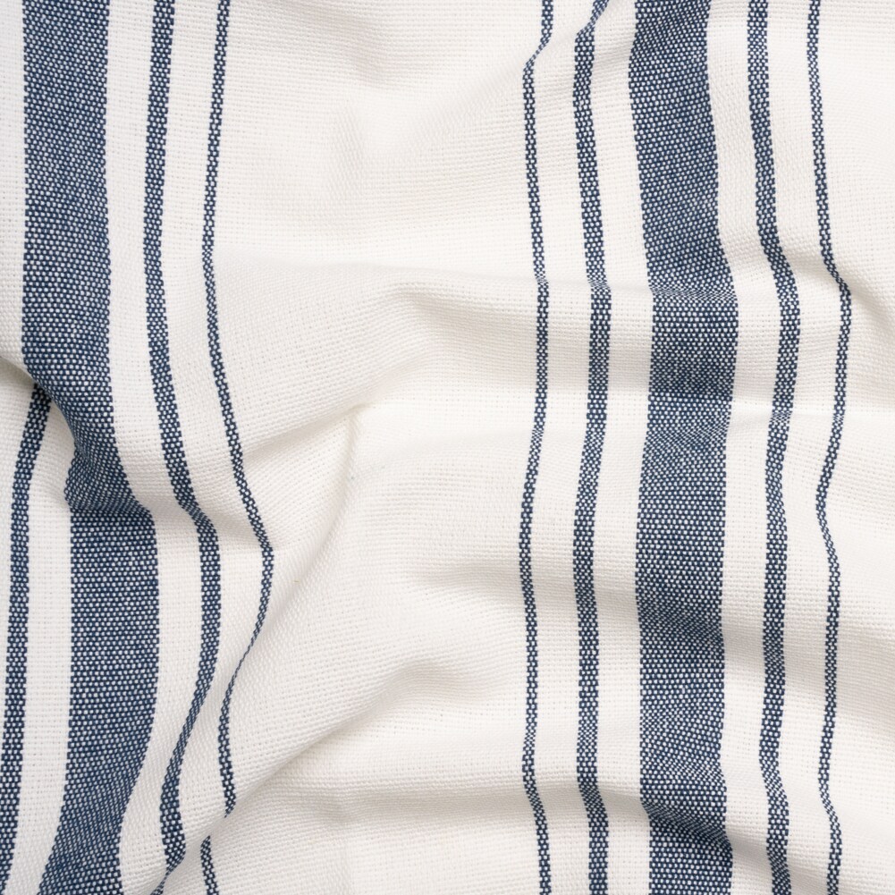 1 Yard Navy on White Striped Basketweave Cotton Canvas