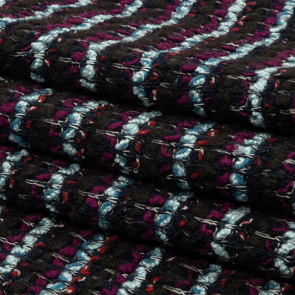 1 Yard Navy, Sky Blue and Red Violet Striped Boucle Chunky Wool Sweater Knit 55’’ Width