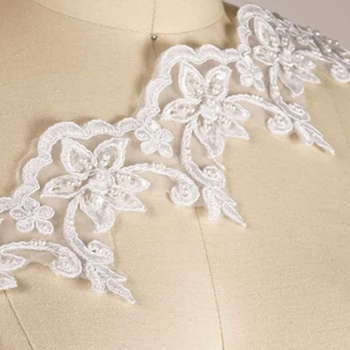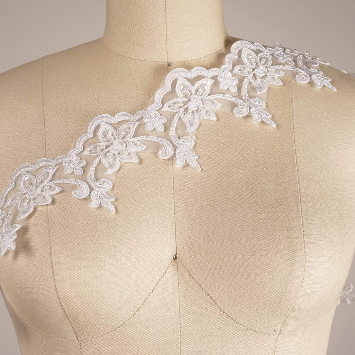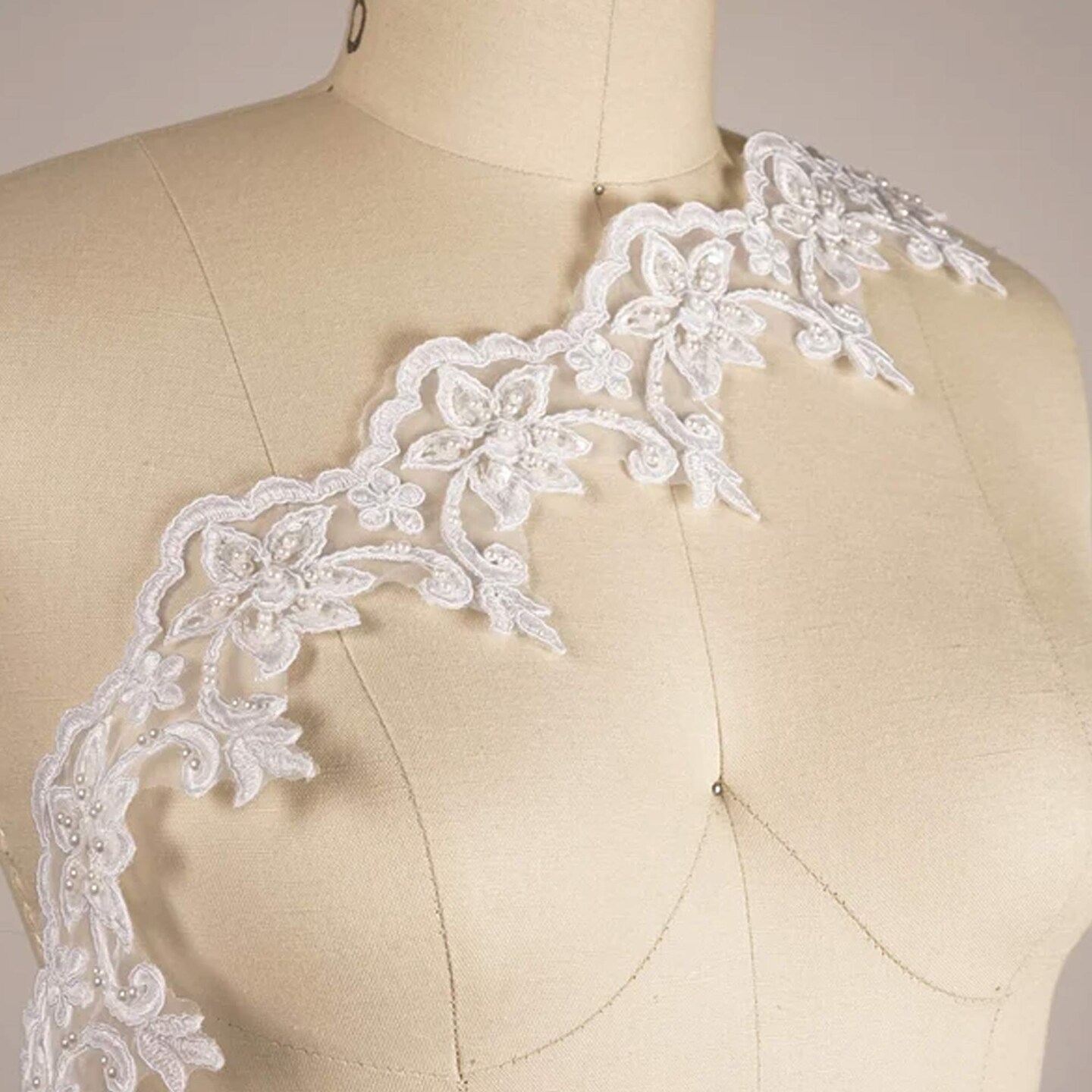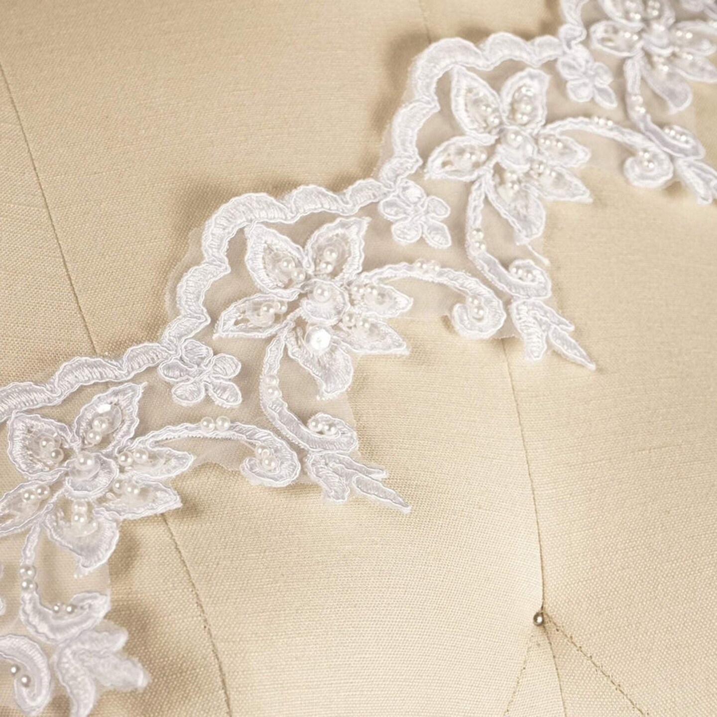 1 Yard Off White Hawaiian Flower Bridal Lace Trim Floral Design Wedding Accent
