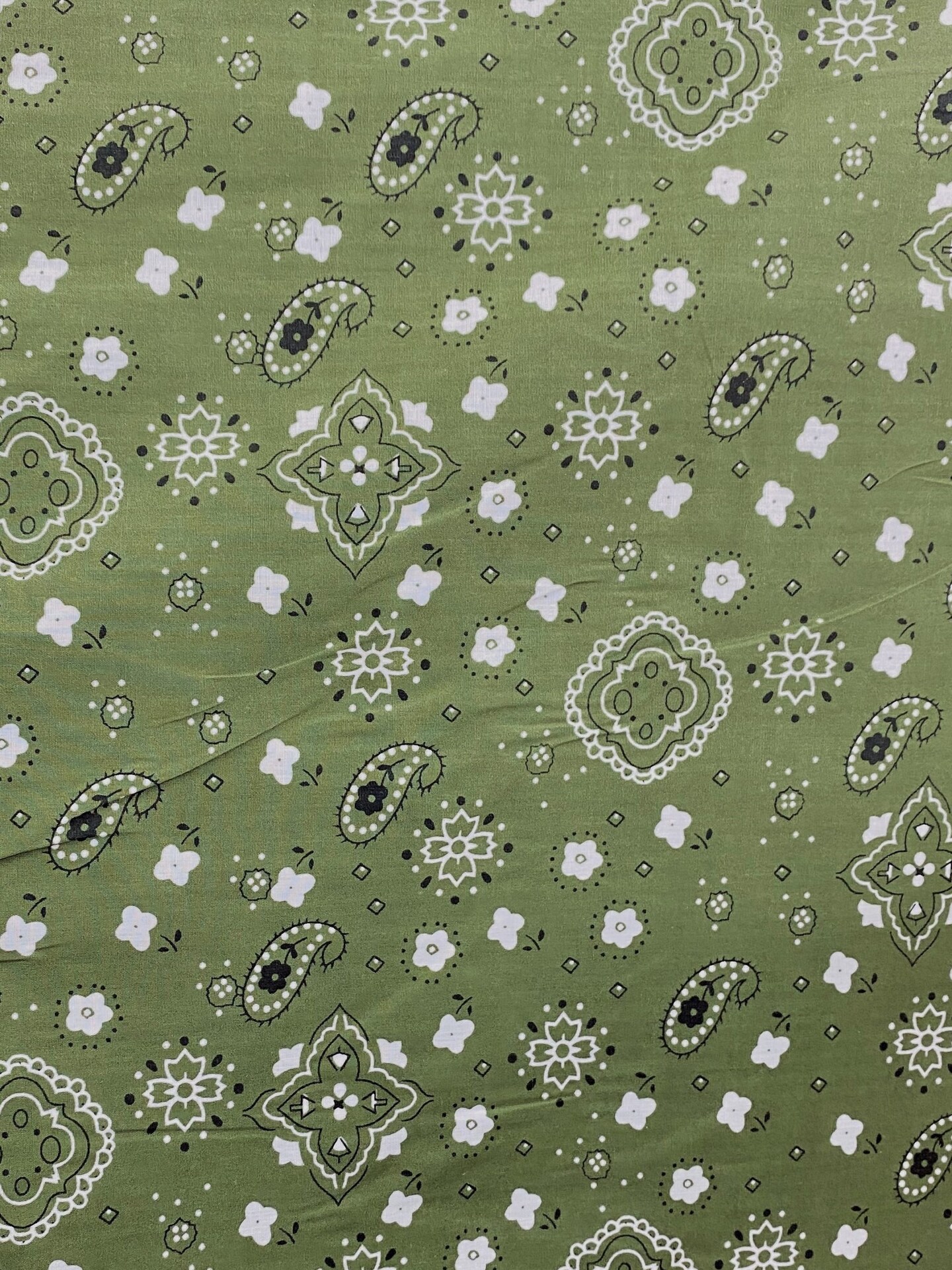 1 Yard Olive Green Paisley Bandana Print Poly Cotton Fabric 59/60 Inch Wide