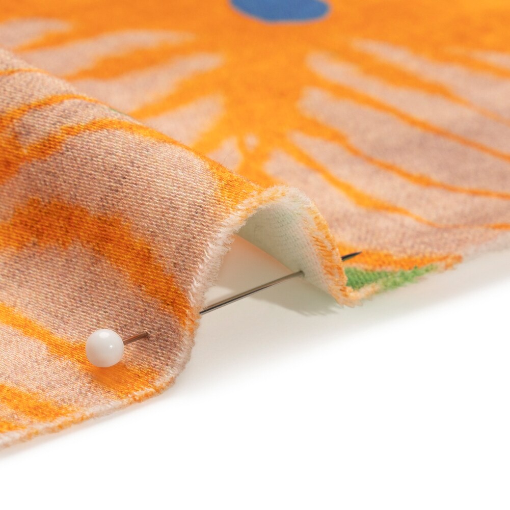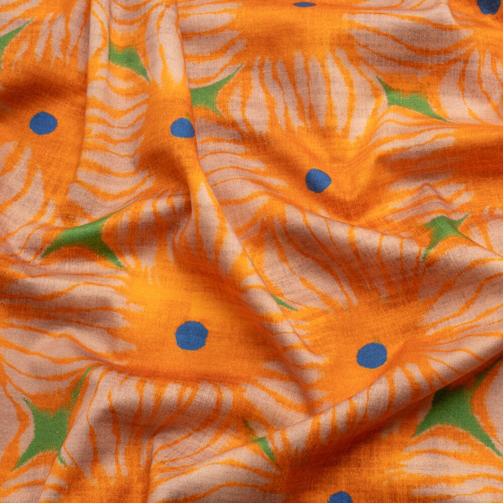 1 Yard Orange Floral Grid Marigold Spritz Stretch Cotton Sateen Fabric