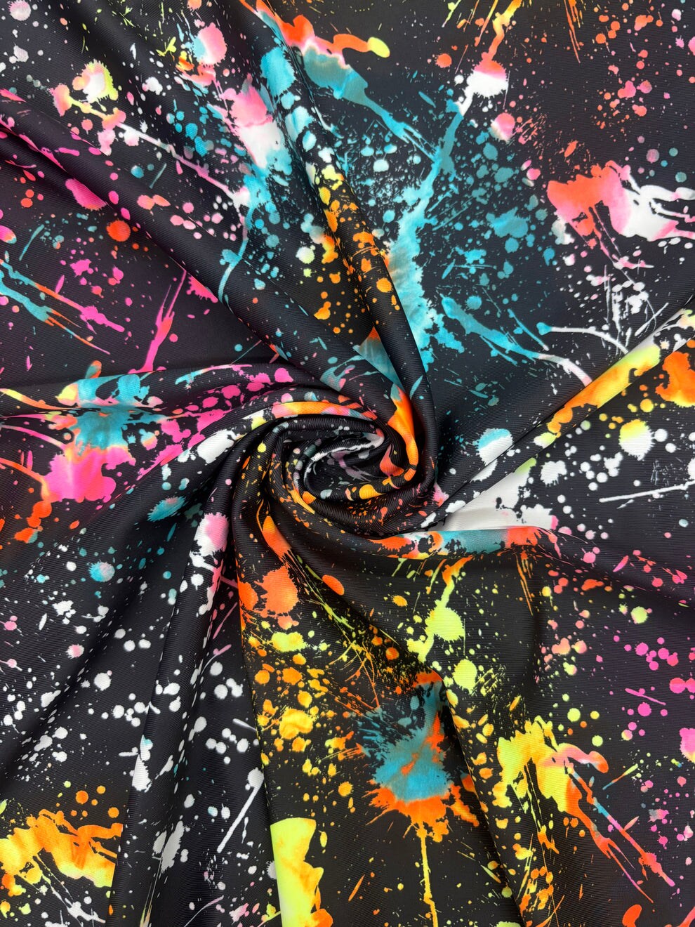 1 Yard Paint Splatter Print Stretch Spandex Fabric for Swimwear and Dancewear 58/60 Inches Wide