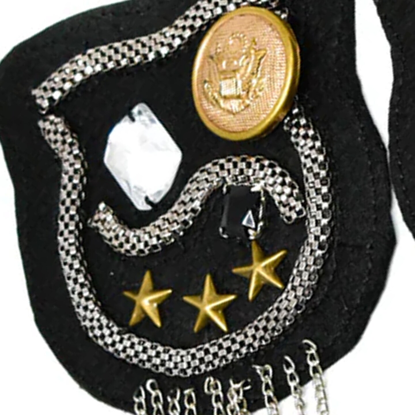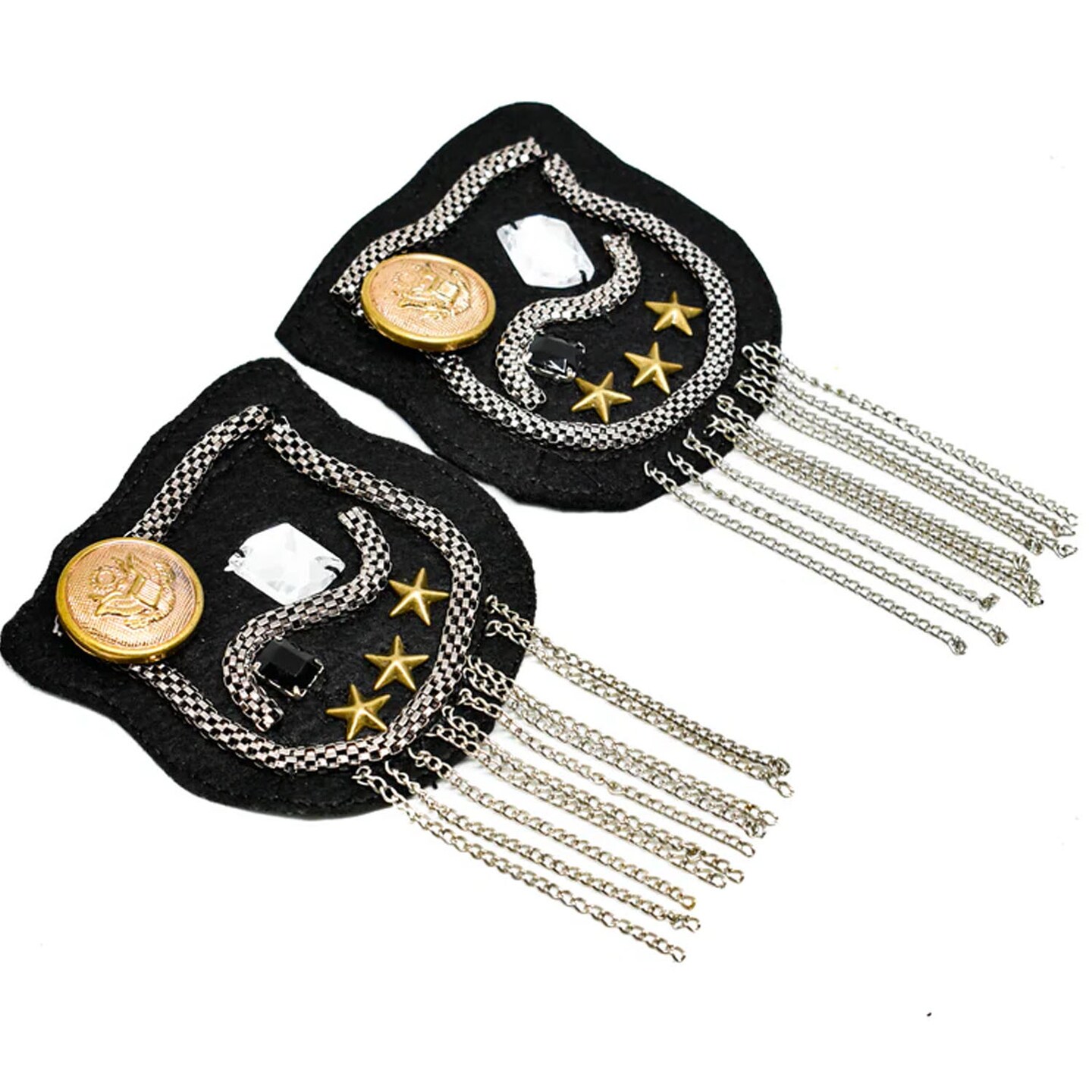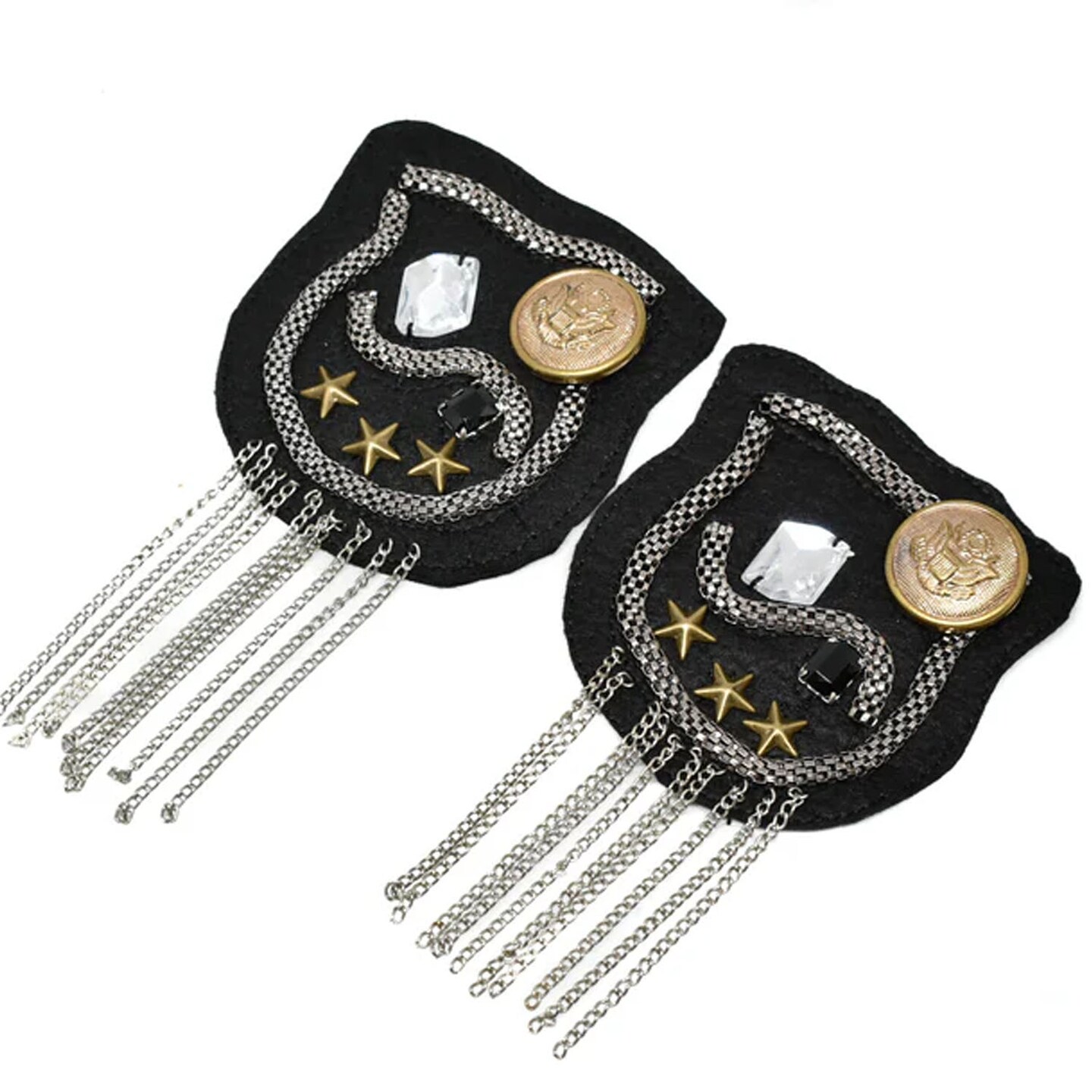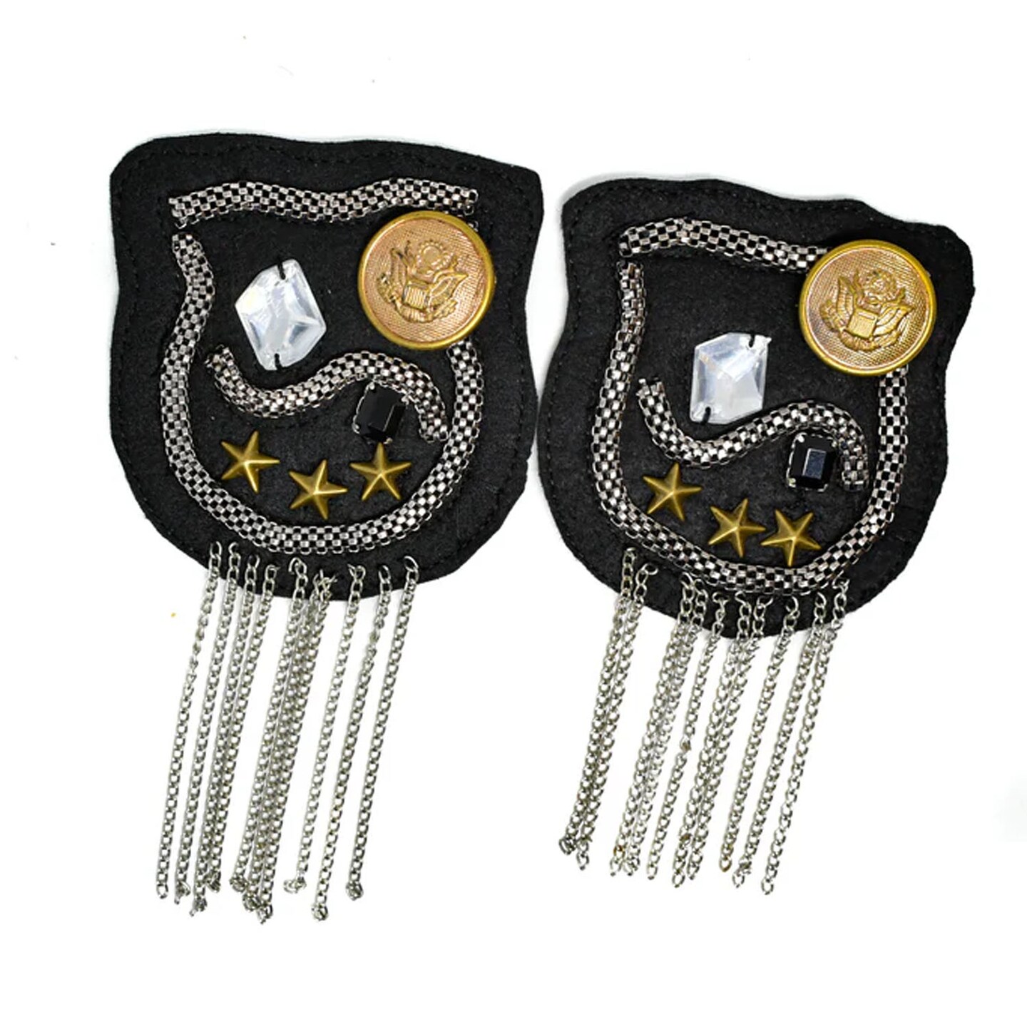 1 Yard Pair Rhinestone Studded Shoulder Pads with Dangling Chain for Costume Jackets
