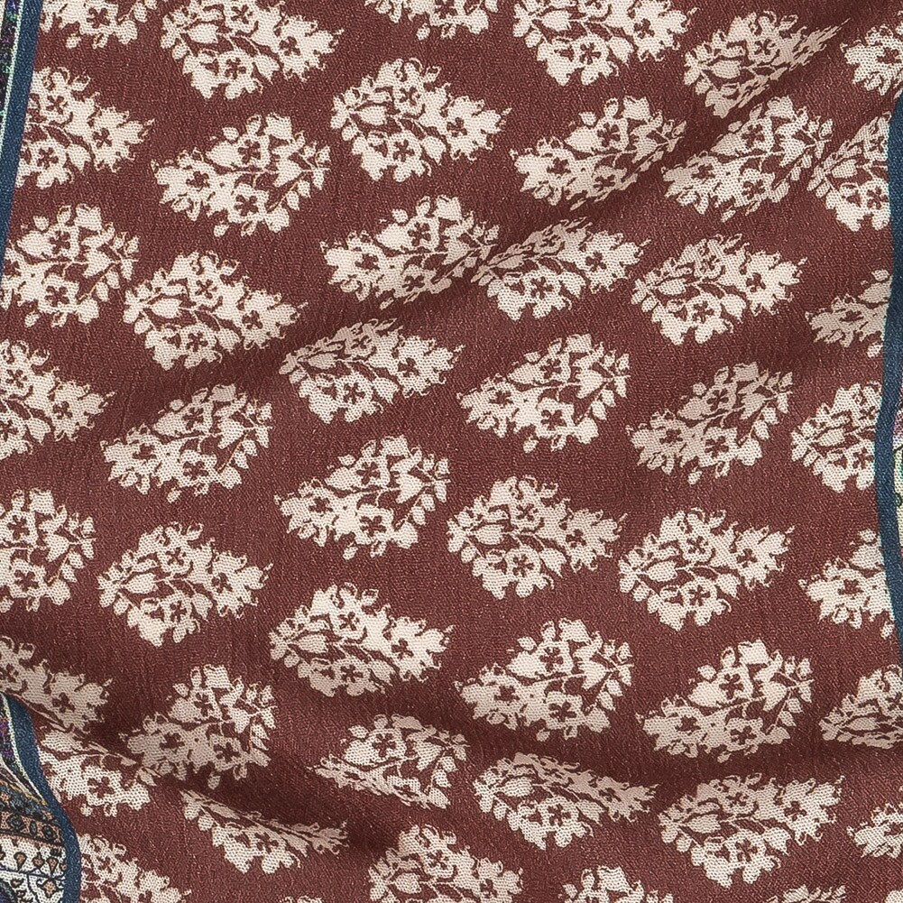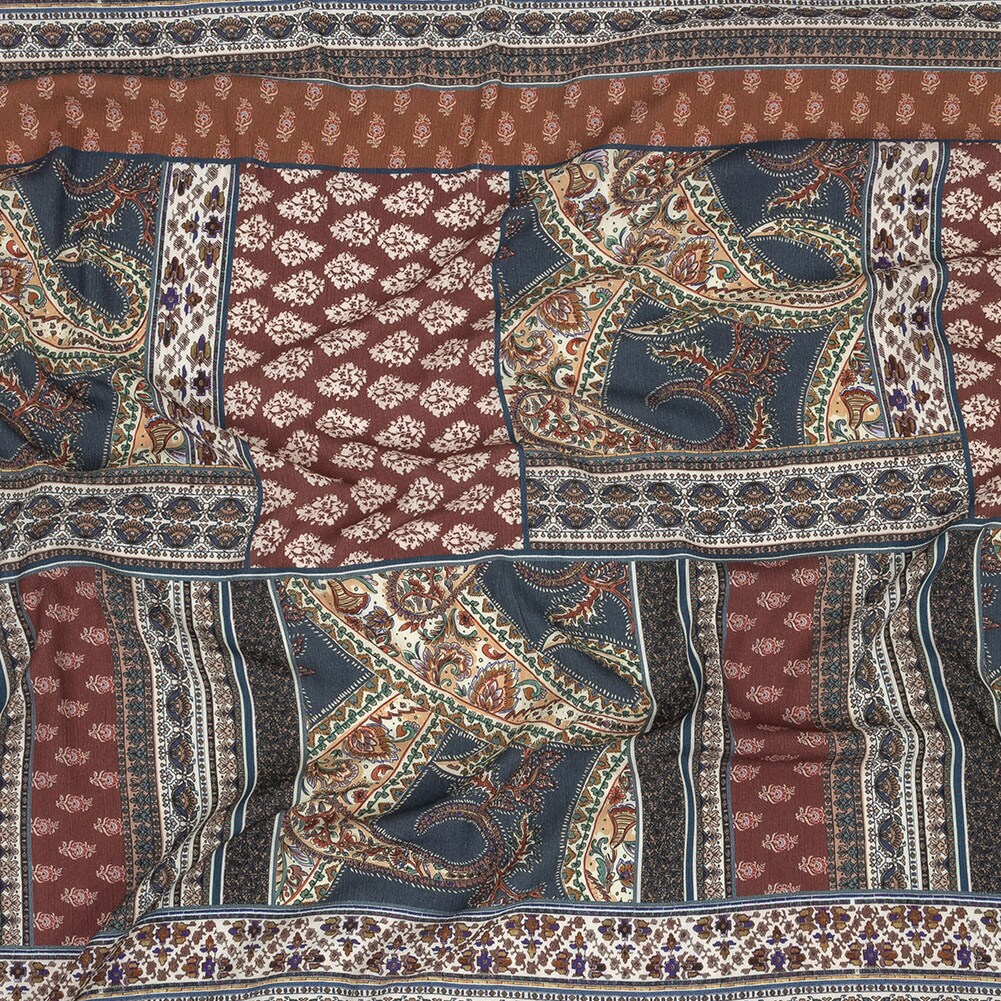 1 Yard Paisley Patchwork Wrinkled Rayon Fabric Navy Red Gauzy Style 53 Inch