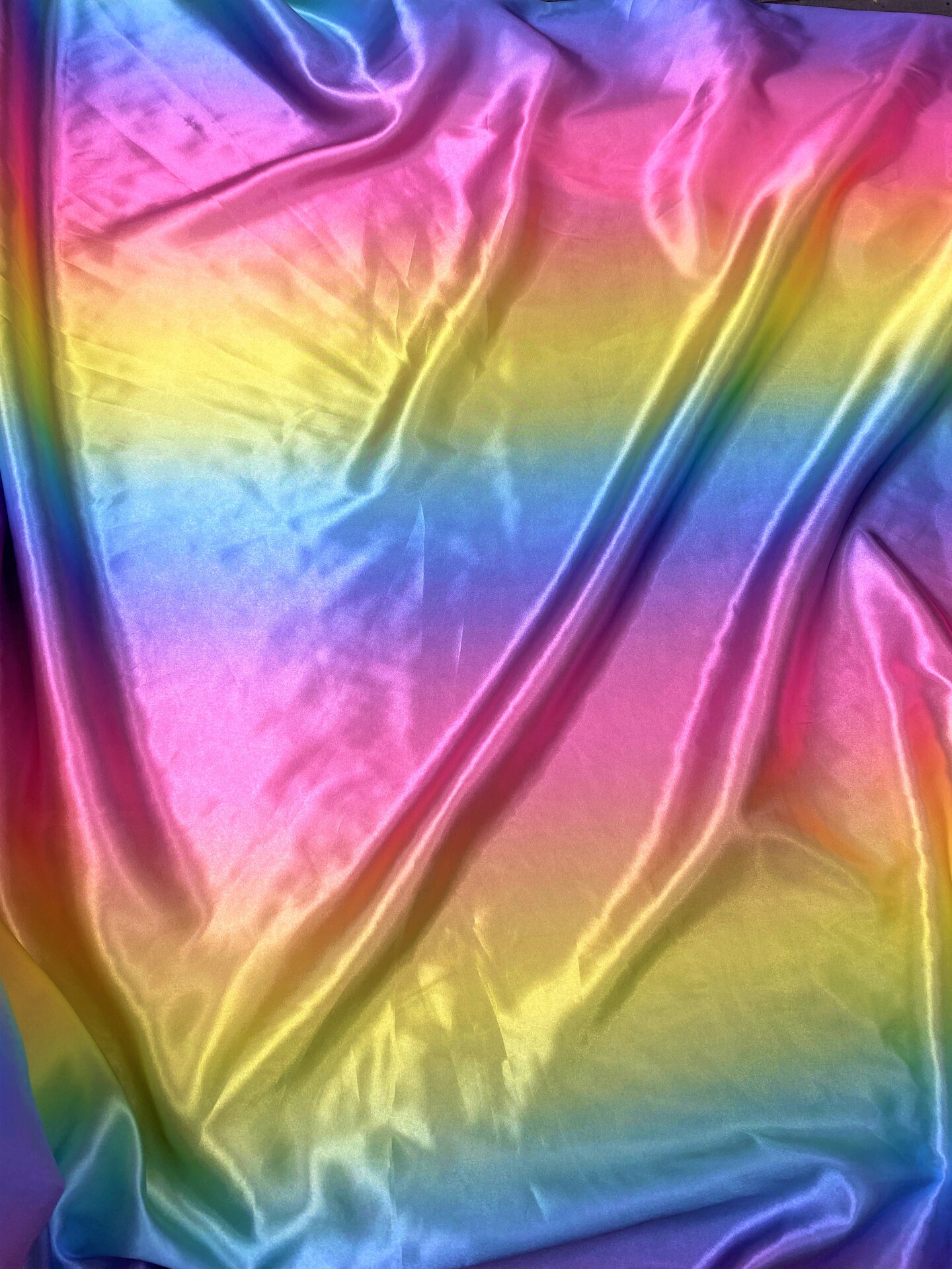 1 Yard Pastel Rainbow Satin Fabric Multicolor Print Lightweight Semi Shiny Polyester Non Stretch 58 Inch Width