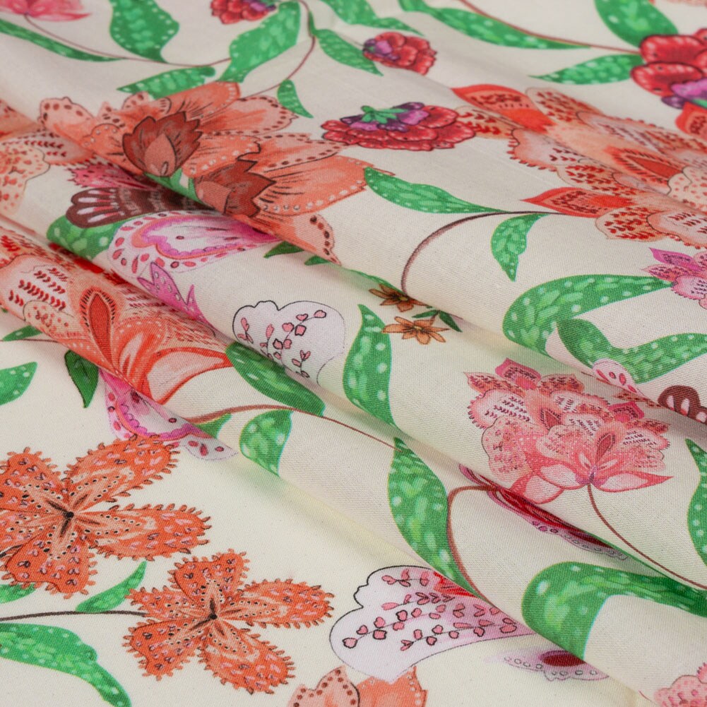 1 Yard Pink and Orange Floral Cotton Voile Lennox Estate Print Fabric