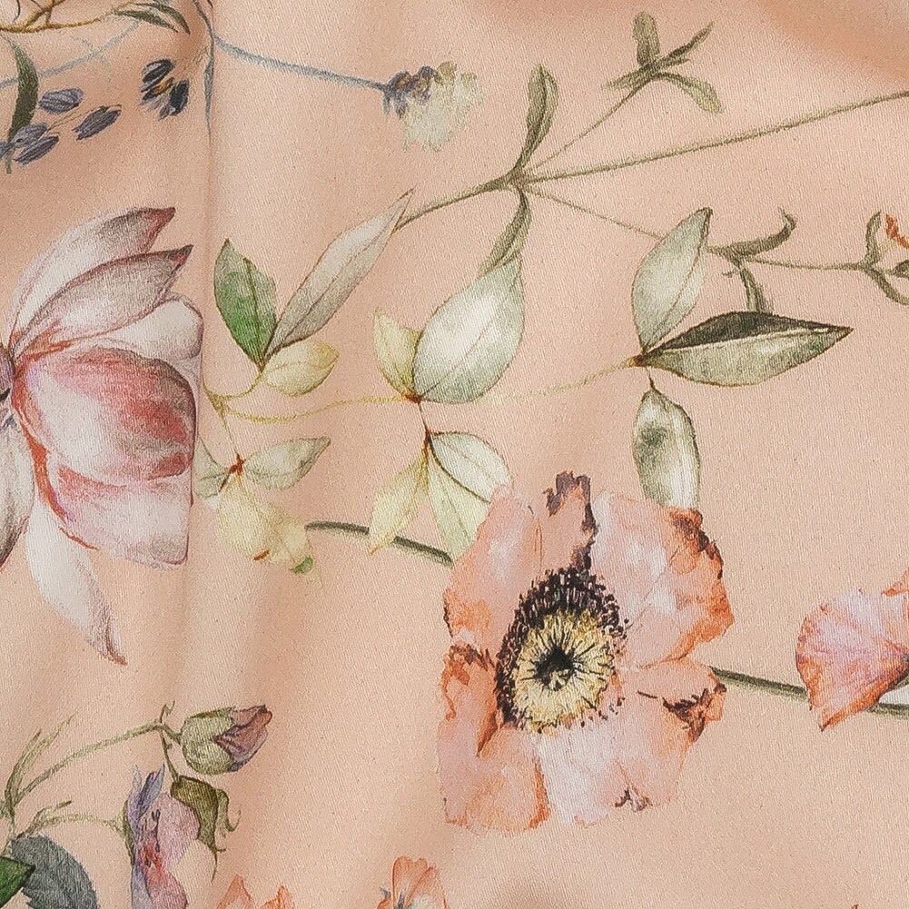 1 Yard Pink Floral Border La Marche des Fleurs Print Stretch Cotton Sateen