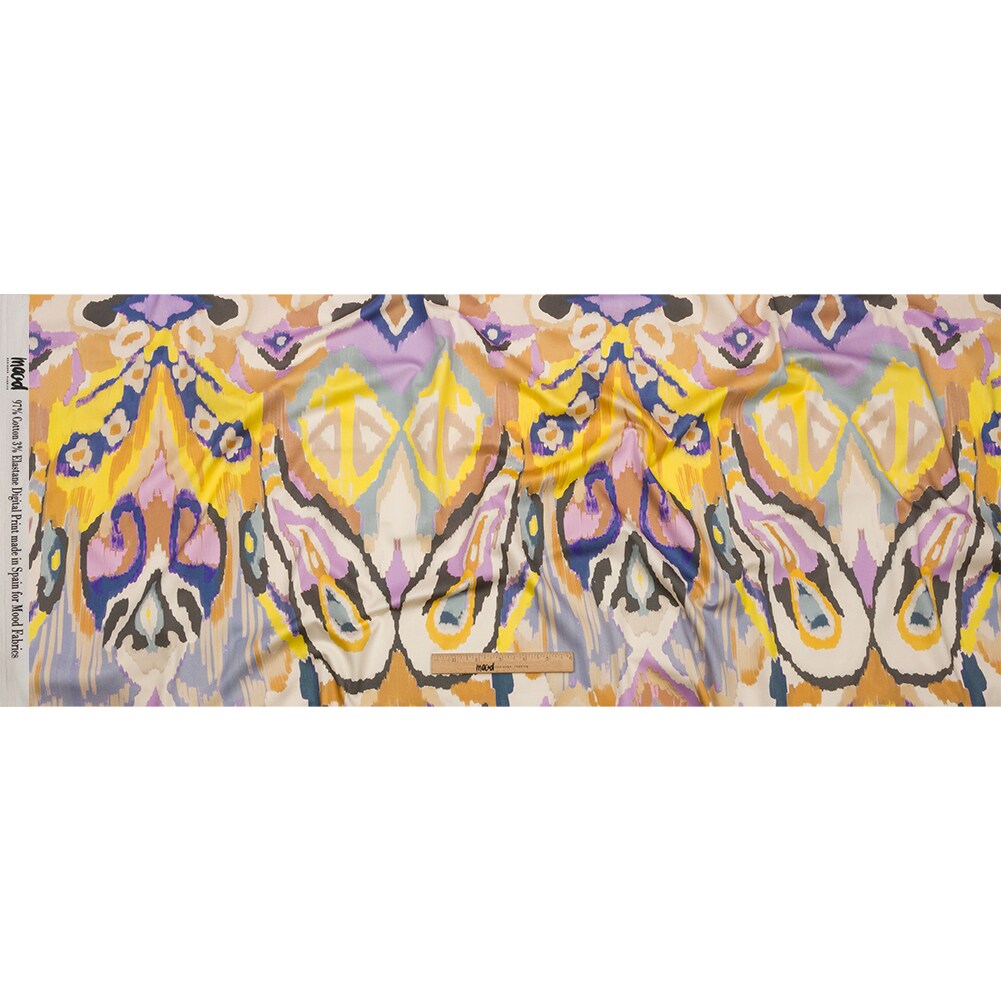 1 Yard Pink Life Outside Abstract Ikat Stretch Cotton Sateen Fabric