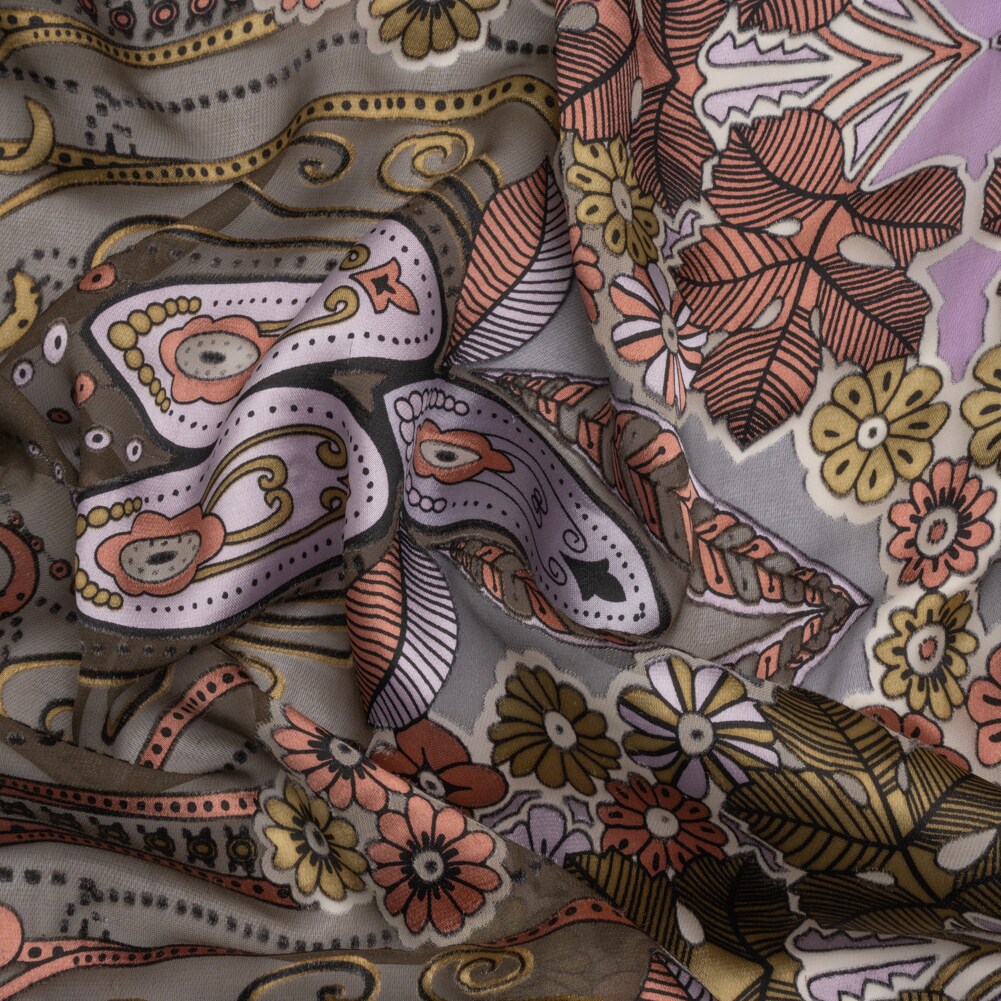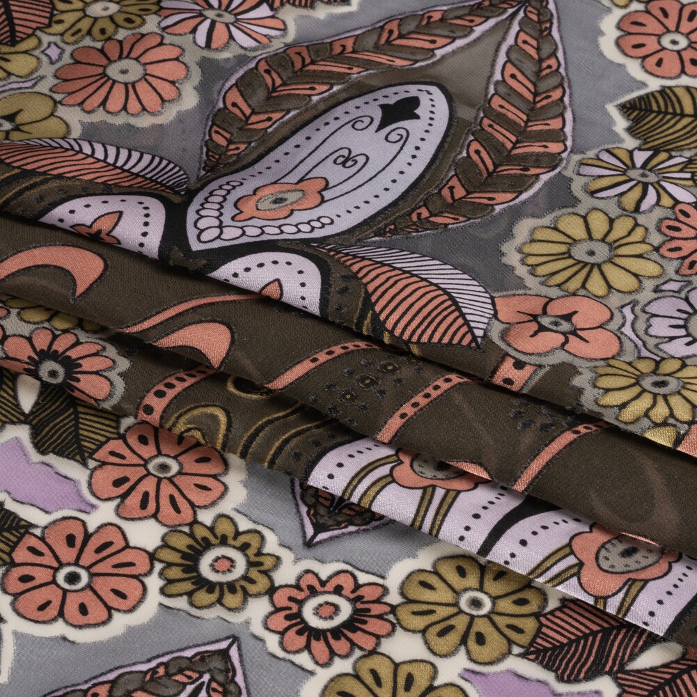 1 Yard Pink Lilac Gray Floral Silk Rayon Burnout Satin Fabric for Blouses 45" Width