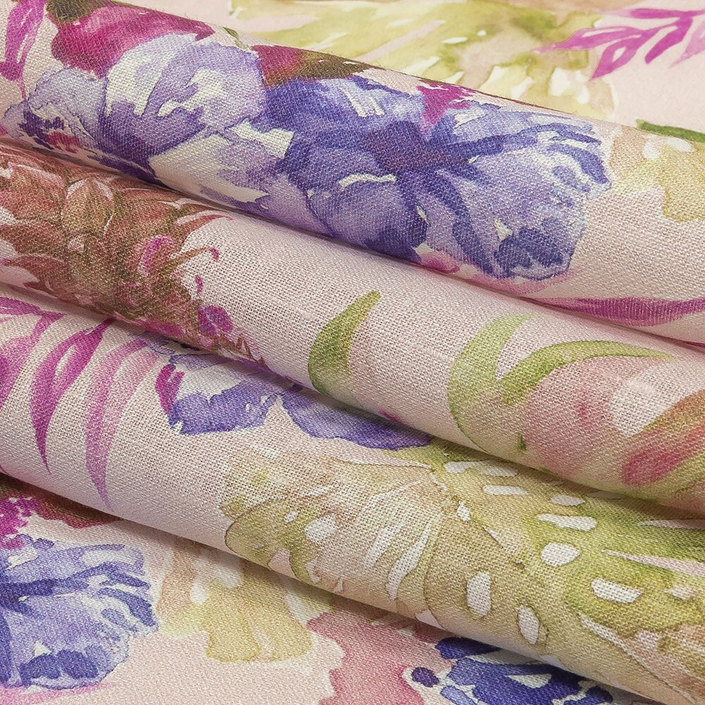 1 Yard Pink Purple and Green Watercolor Tropical Plants and Pineapples Medium Weight Linen Woven Fabric