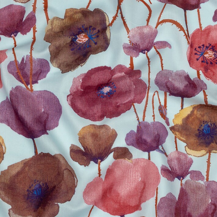 1 Yard Pink Purple and Sky Painterly Blooms Floral Cotton Lawn Fabric