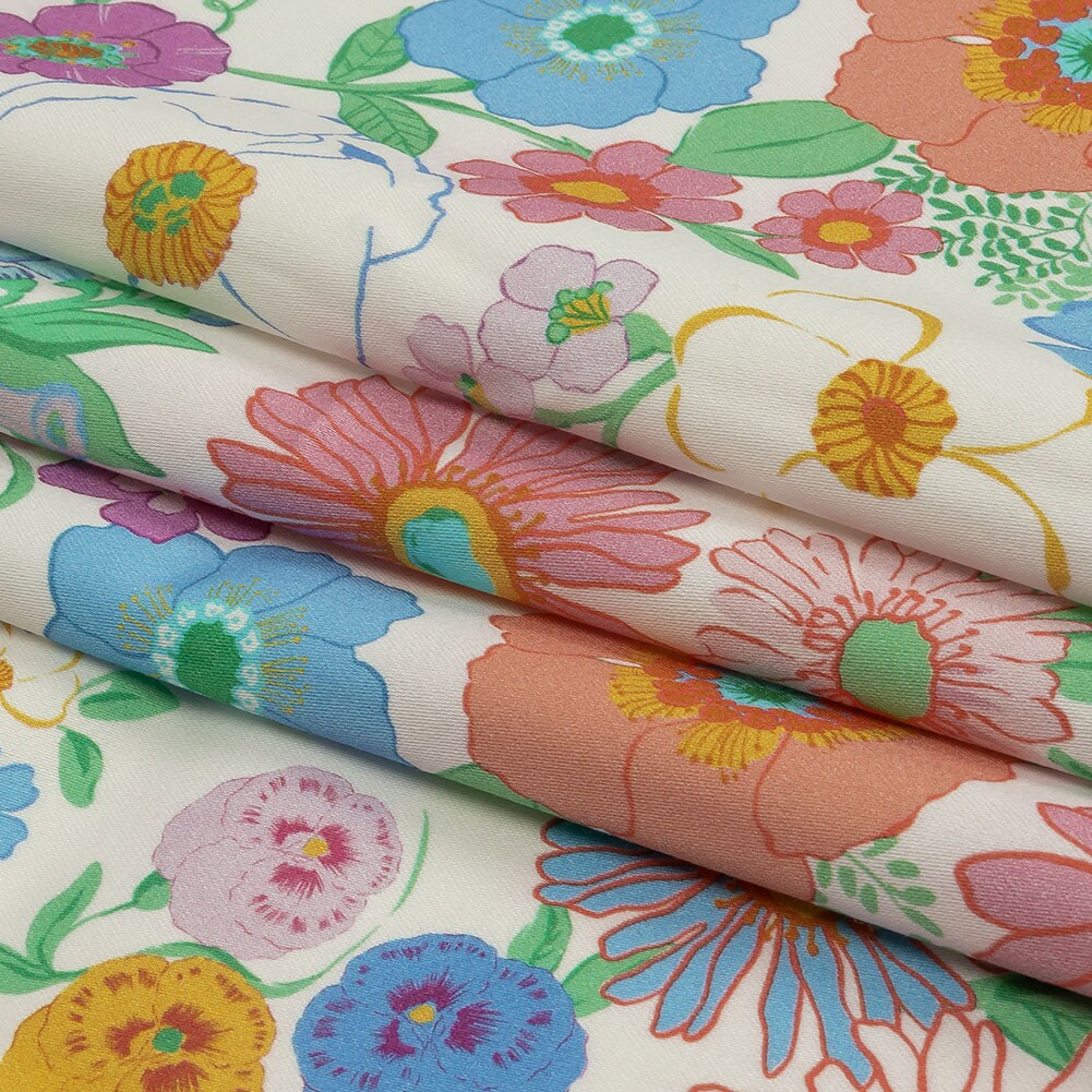 1 Yard Pink Purple Wonderblooms Stretch Cotton Sateen Floral Print Fabric