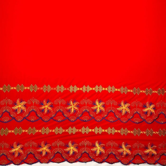 1 Yard Plumeria Flower Embroidered Double Border Fabric 100% Polyester 56 Inches Width