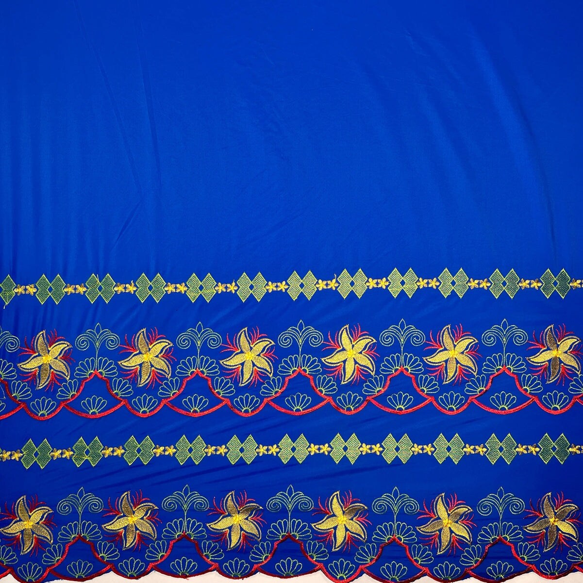 1 Yard Plumeria Flower Embroidered Double Border Polyester Fabric 56 Inch Width